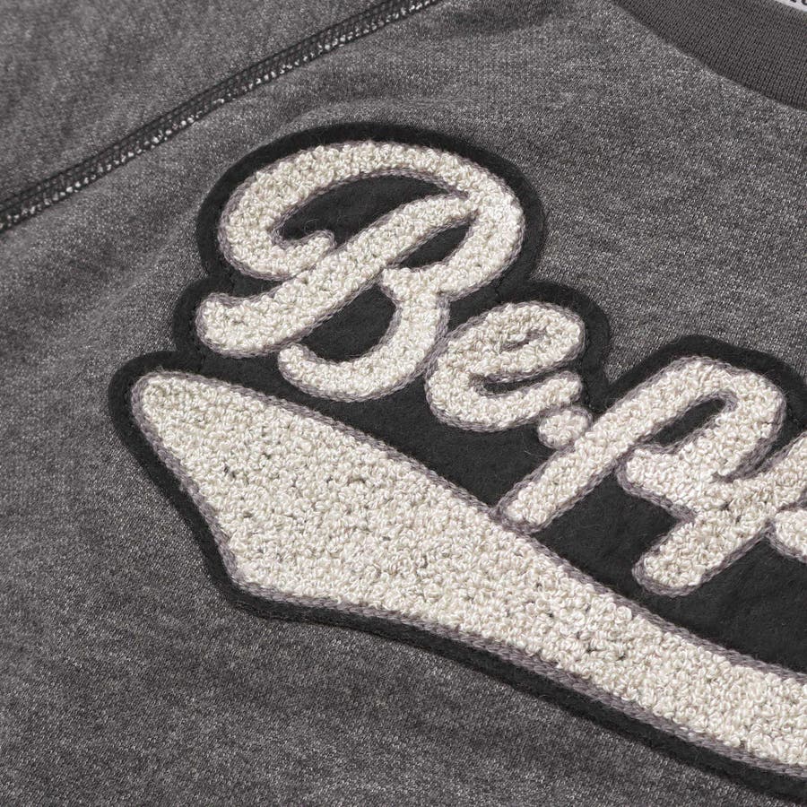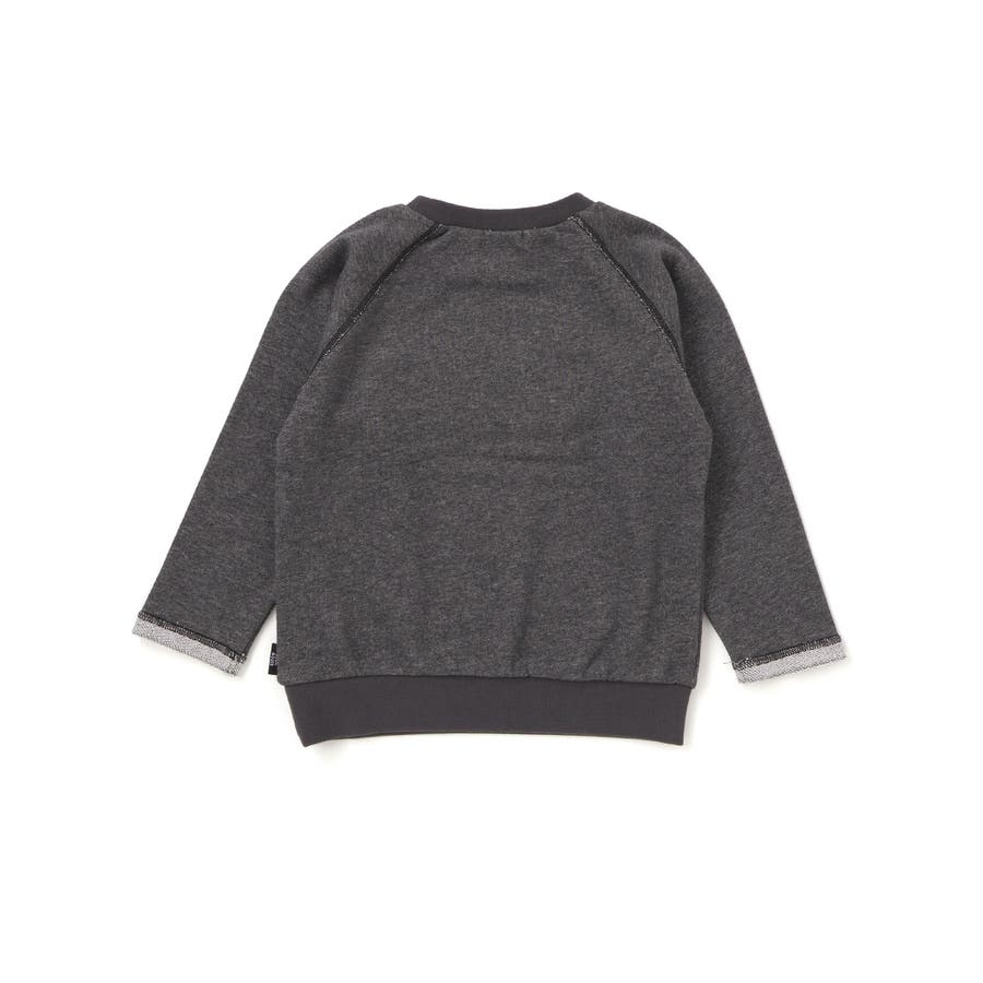 大きなサガラ刺しゅうワッペンが主役の男の子用ラグラントレーナー。