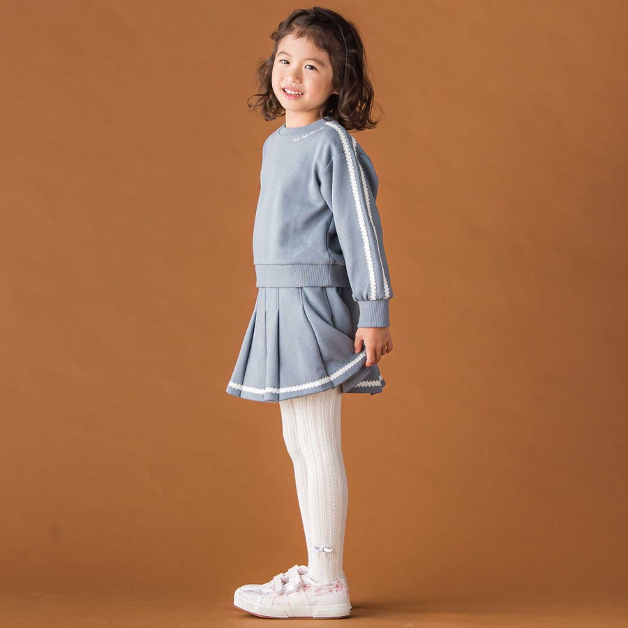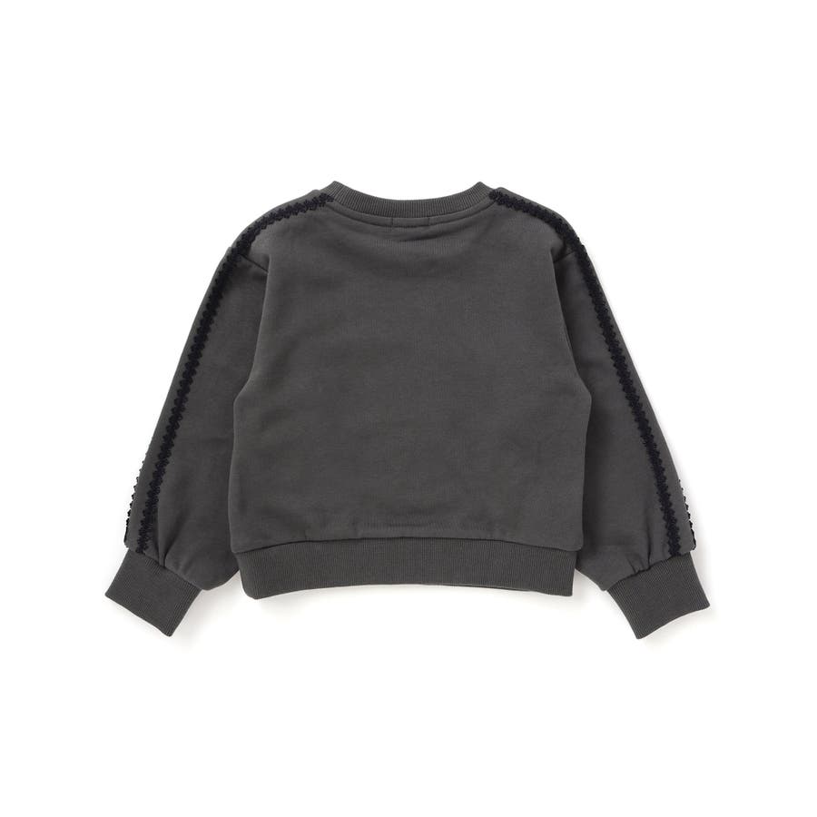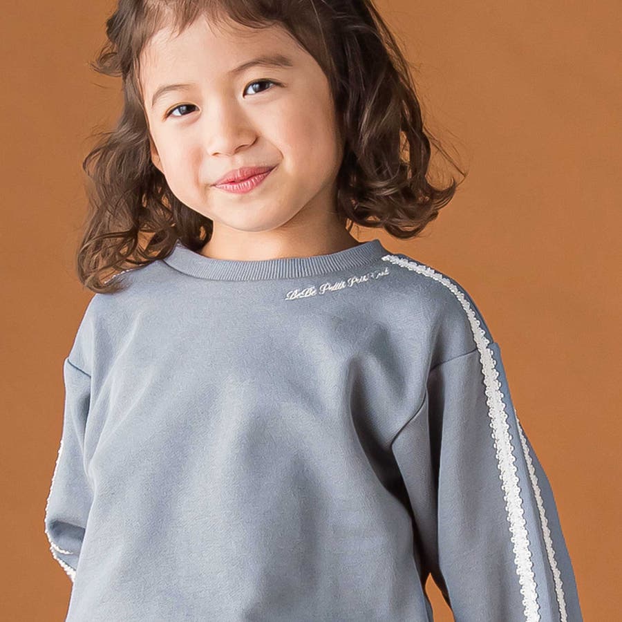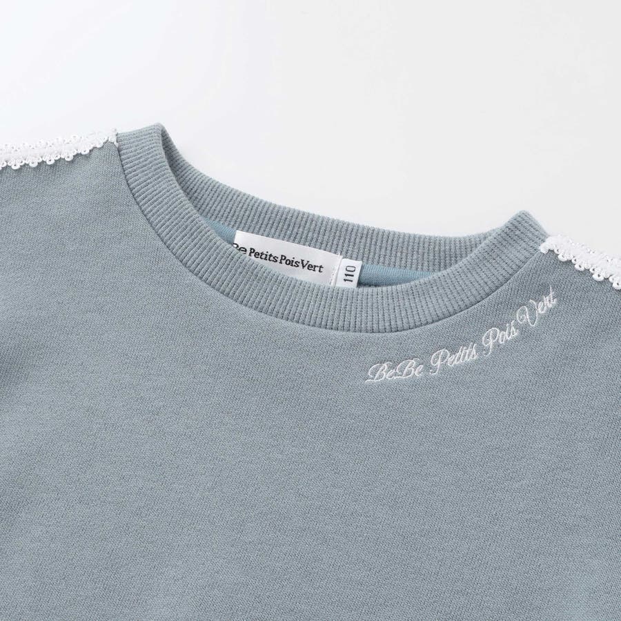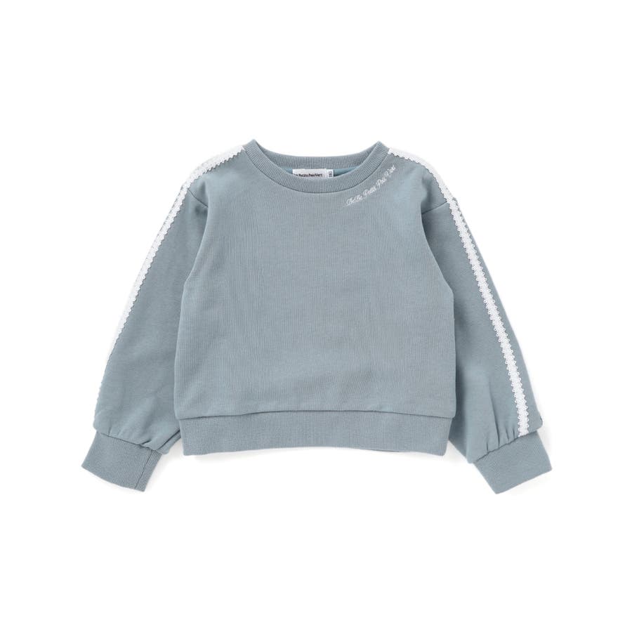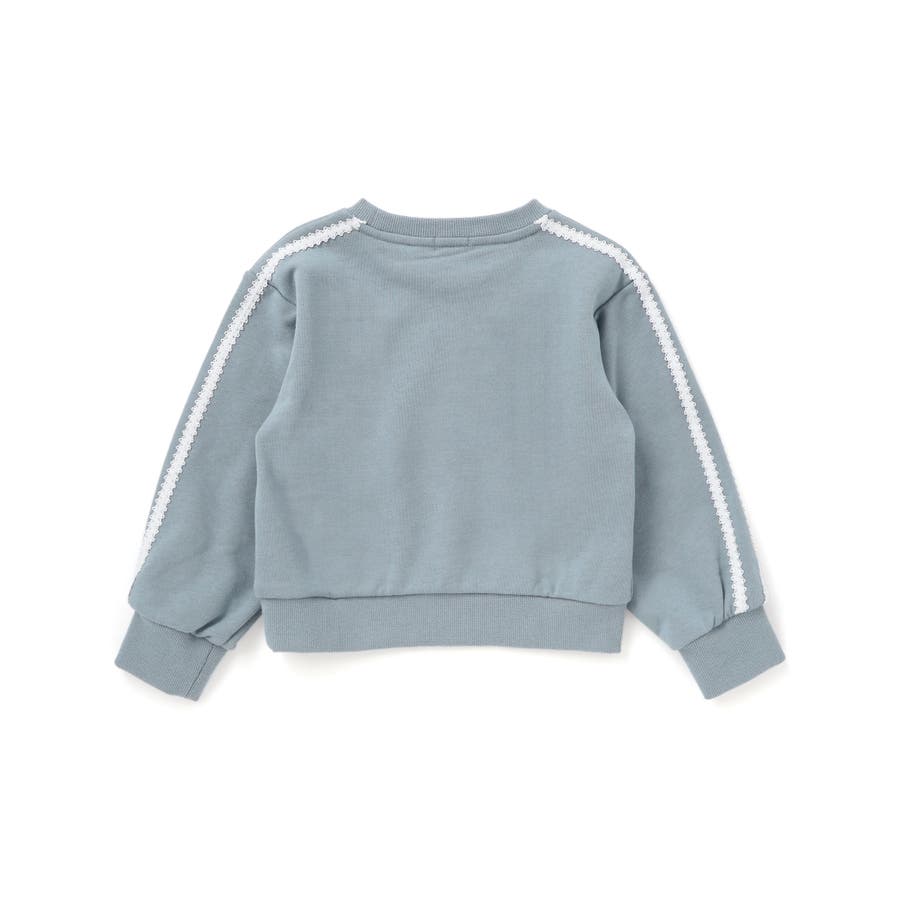 袖のレースが華やかに映える、女の子用裏毛トレーナー。
