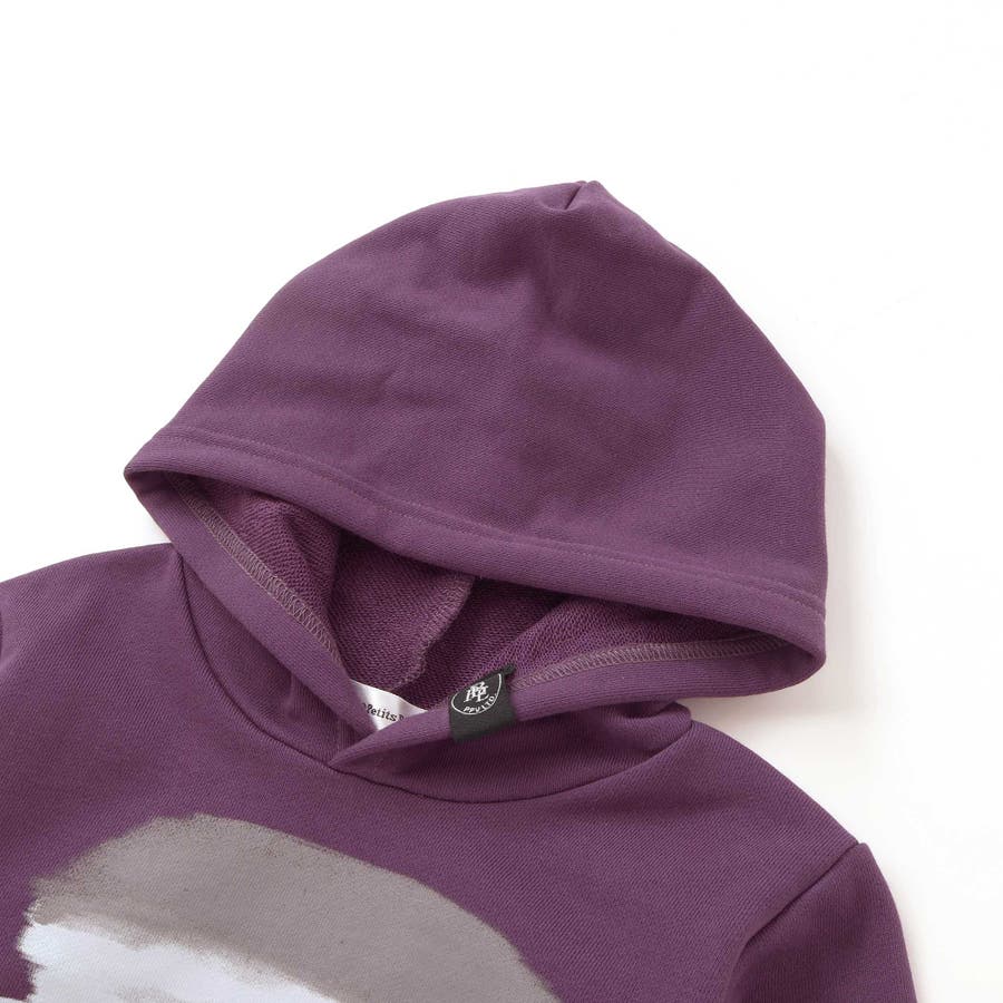 ラバープリントのグラデーションが目を引く、男の子用フード付きトレーナー。