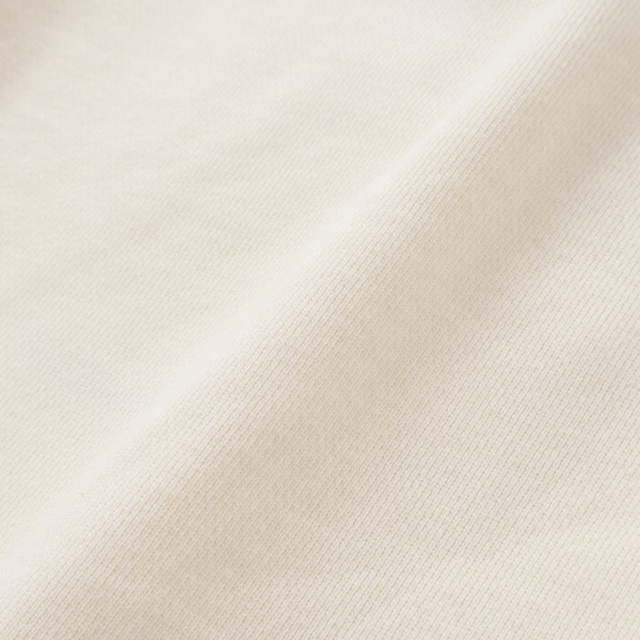 襟元と袖口にはスパンフライスを使用し、フィット感と耐久性を兼ね備えています。