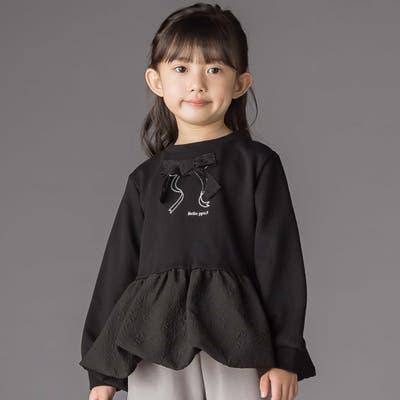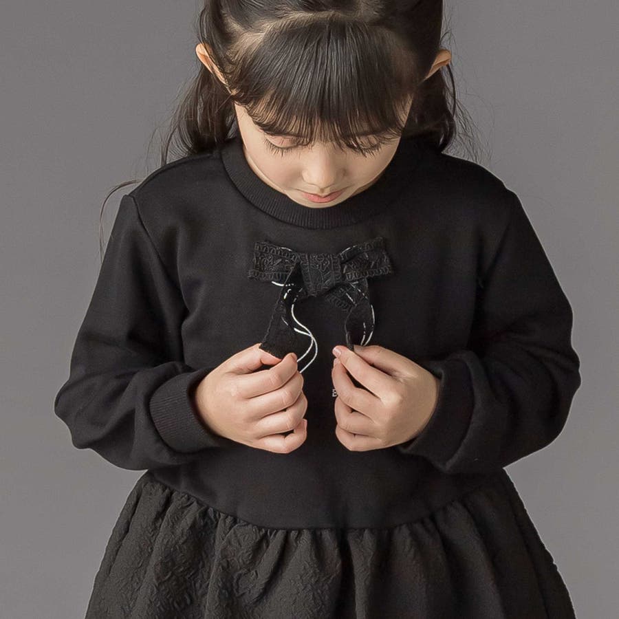 【店舗限定】裏毛ジャガード切り替えリボントレーナー(95~150cm)
