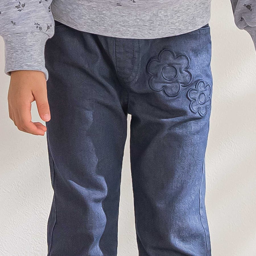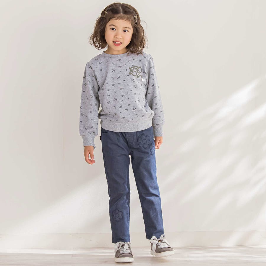【店舗限定】花パッチワークカラーデニムロングパンツ(95~150cm)