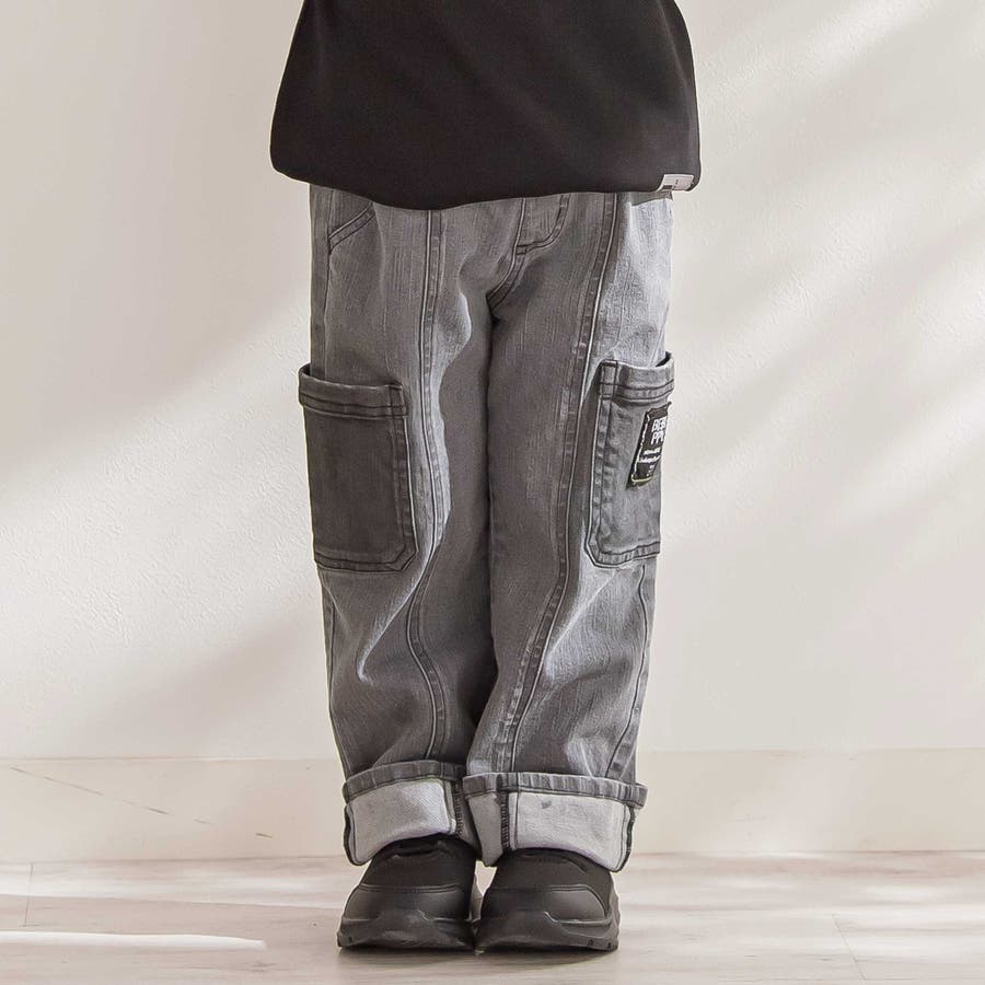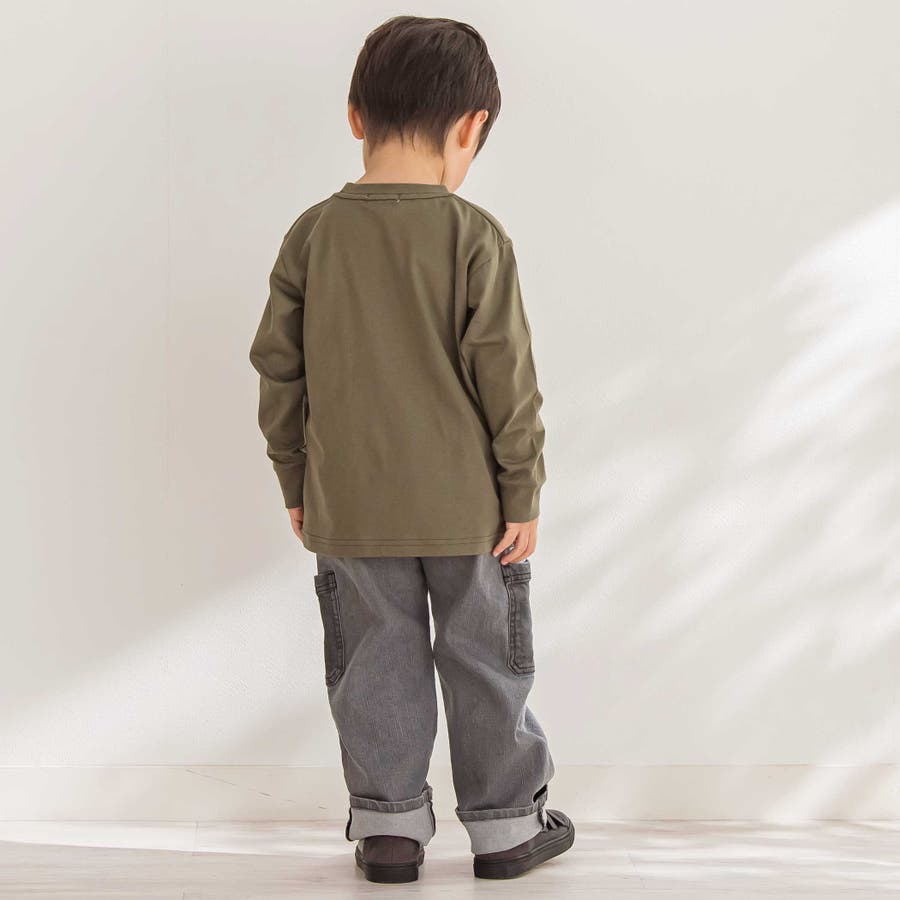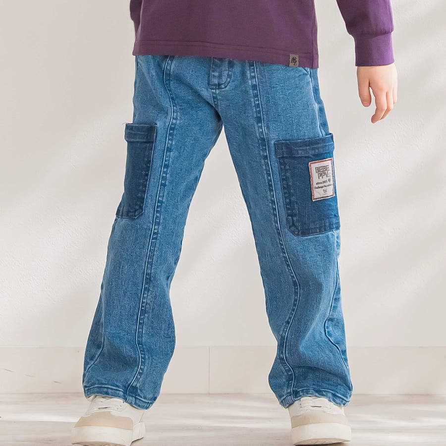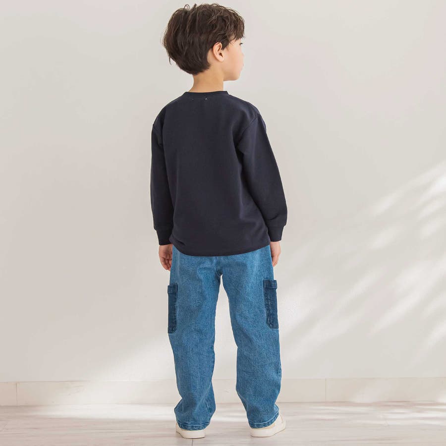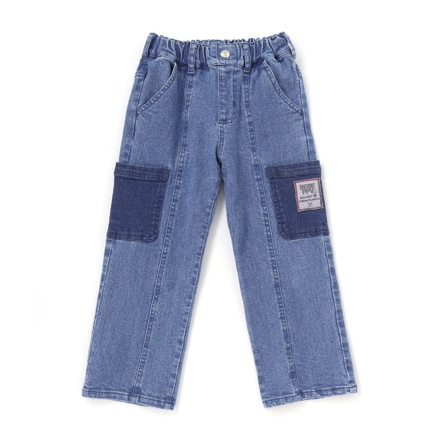 色味を変えたポケットがアクセント。動きやすくてタフな印象の男の子用デニムパンツ。
