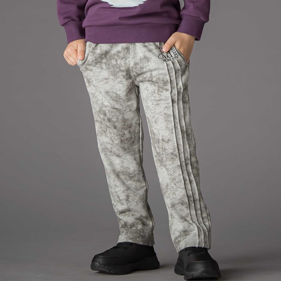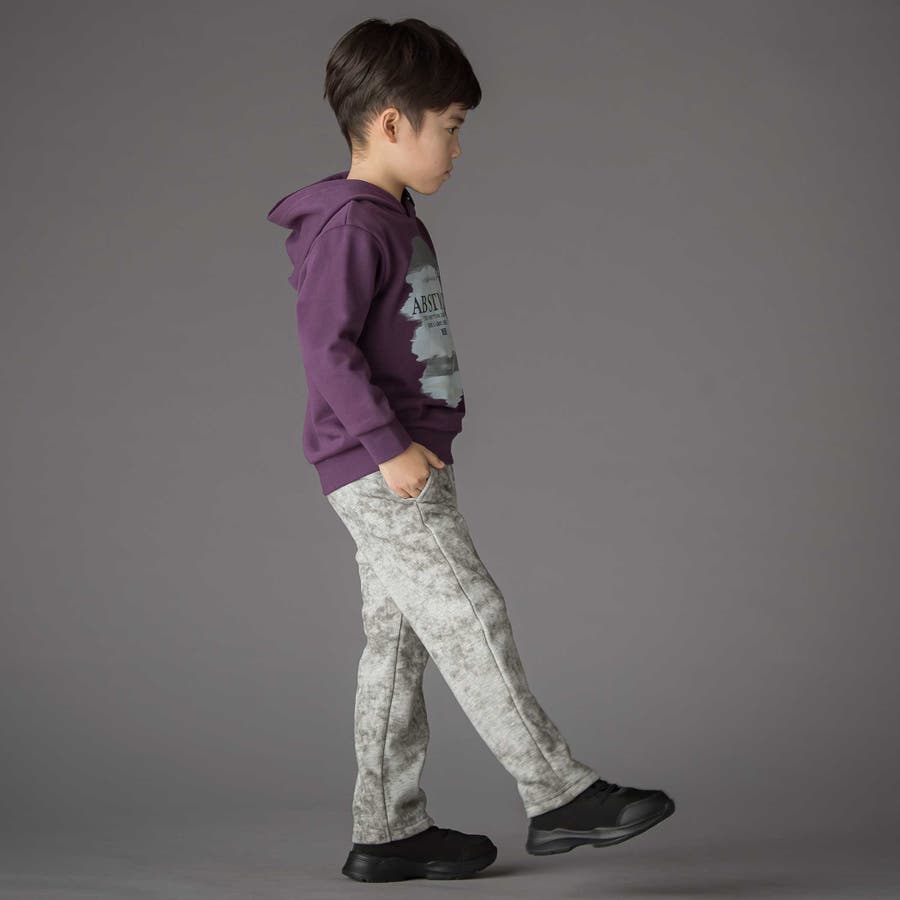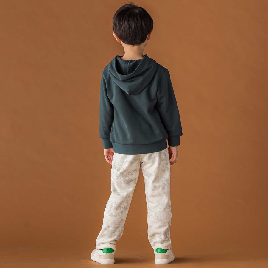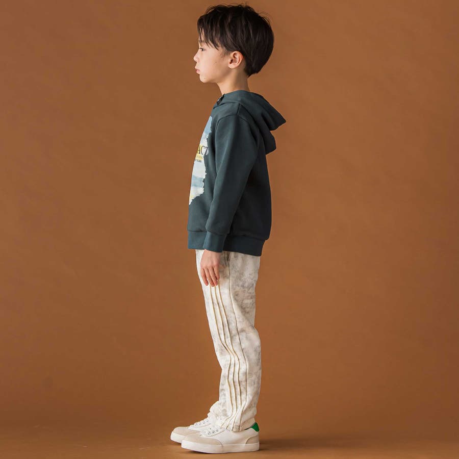 タイダイ柄とピンタックがアクセント、男の子用裏毛ロングパンツ。