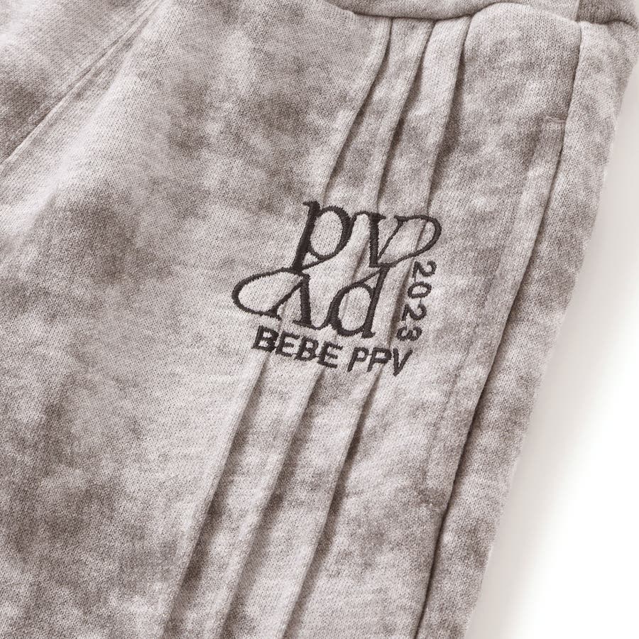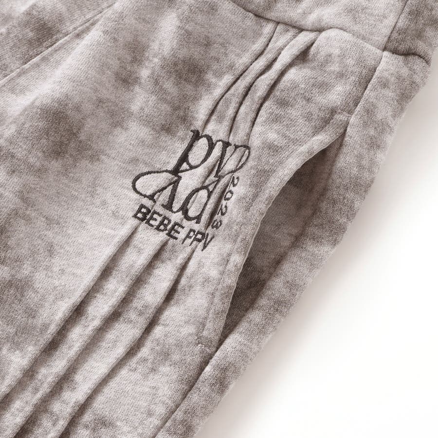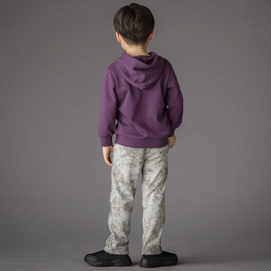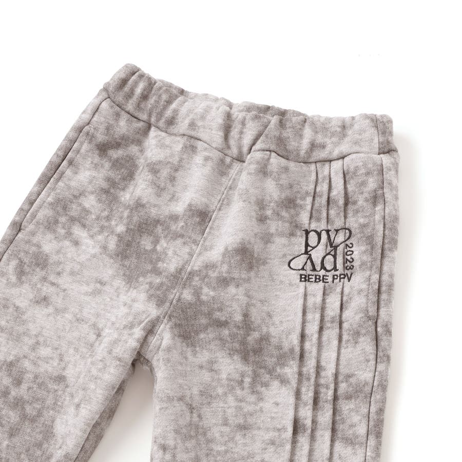 タイダイ柄とピンタックがアクセント、男の子用裏毛ロングパンツ。
