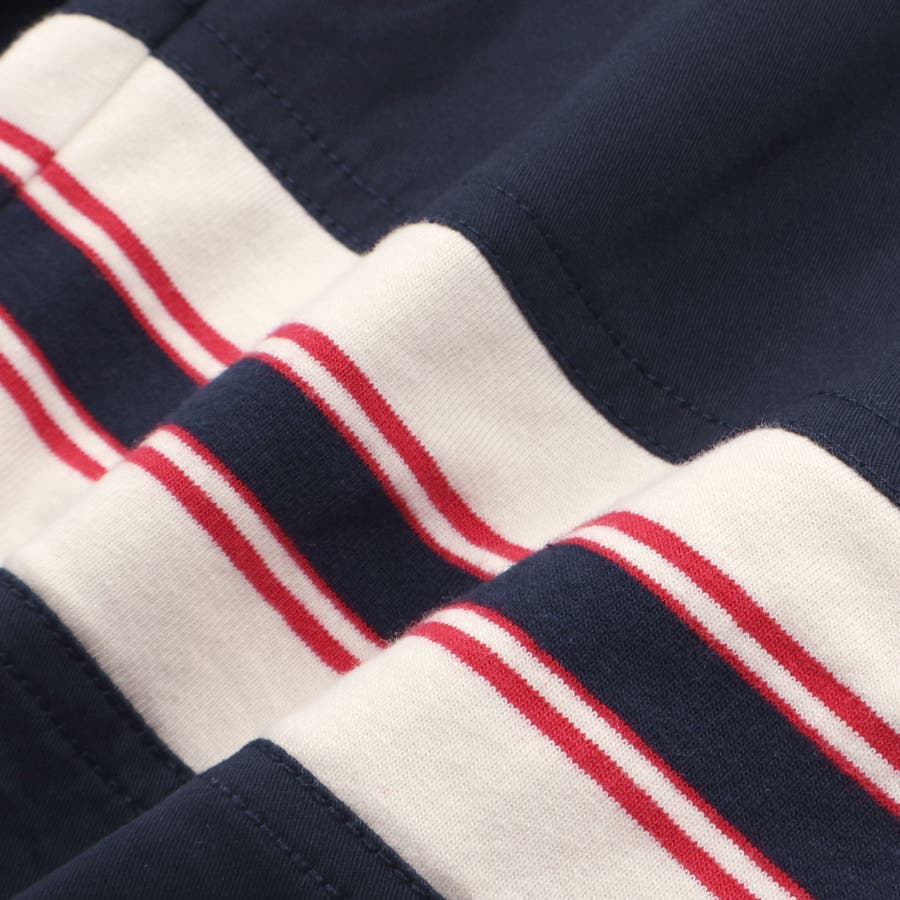 ポイント使いのボーダー生地はポロシャツ(1208-72000)やワンピース(1201-72003)を同じ生地を使用。