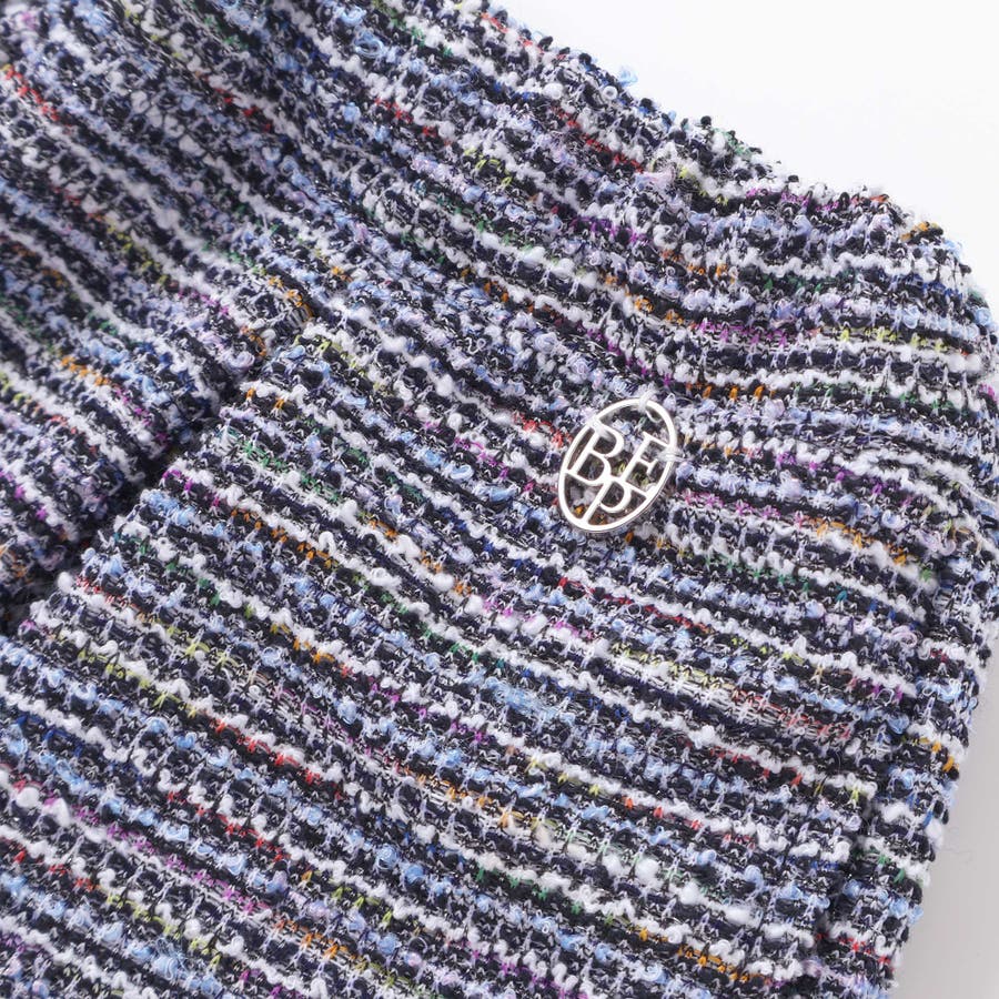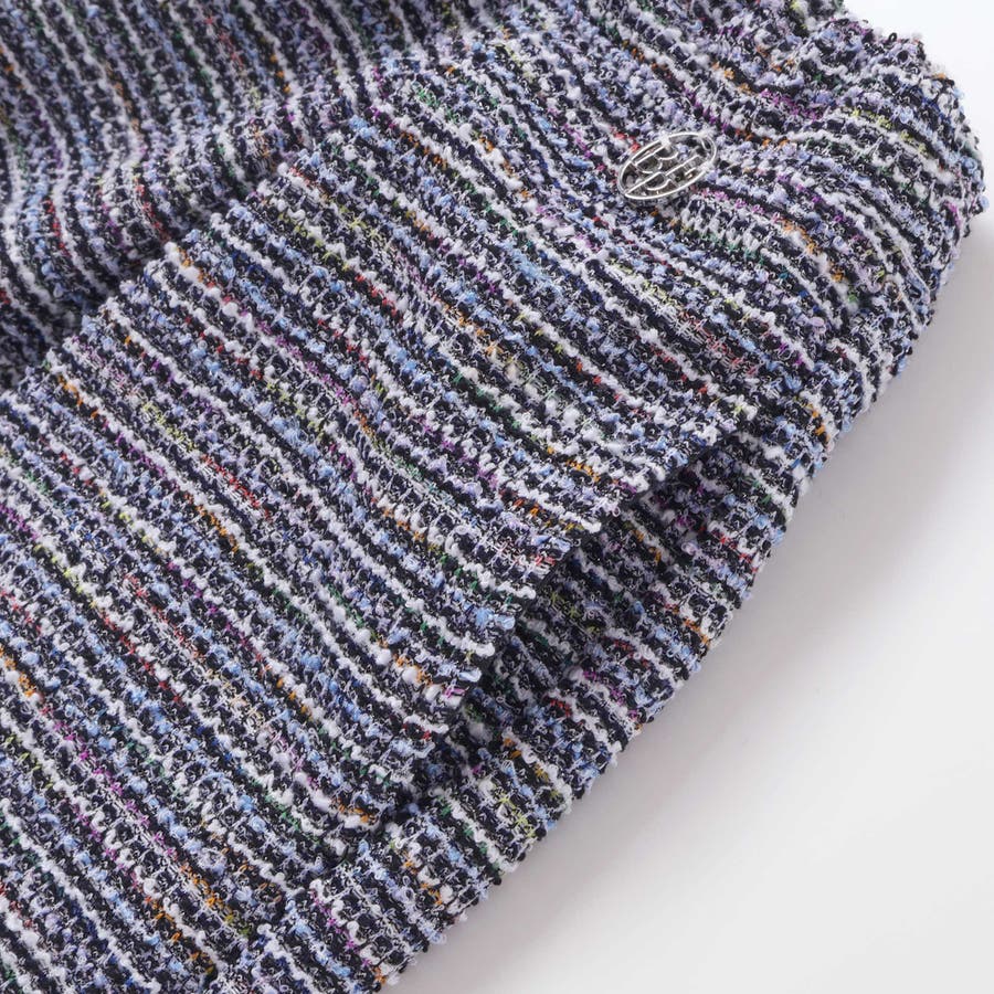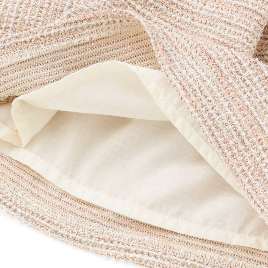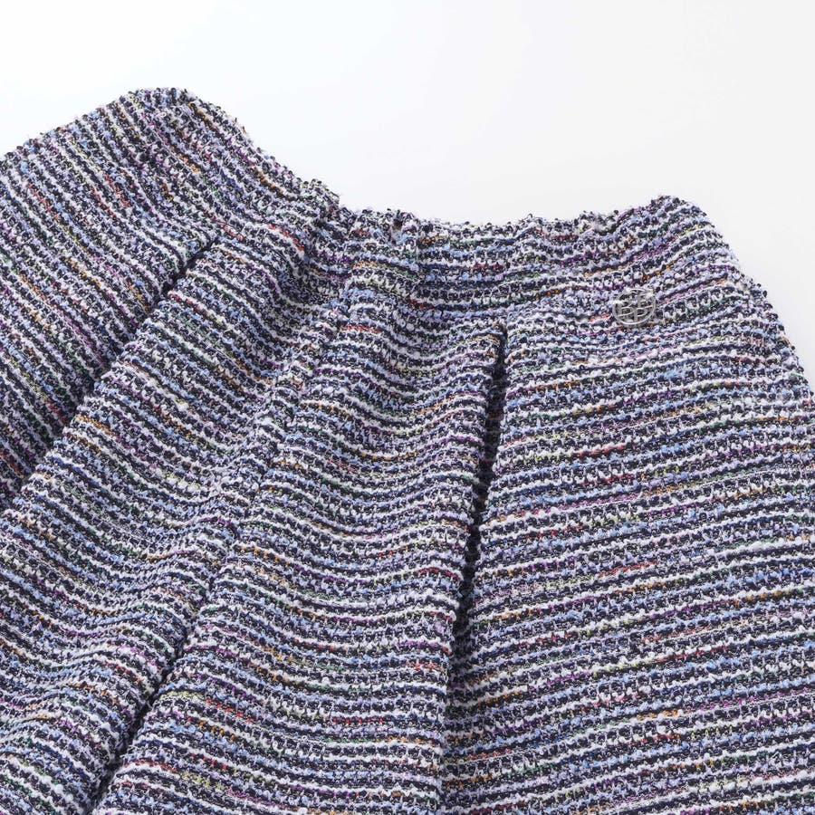 カラフルなツイード生地が目を引く、上品で可愛らしいシルエット。