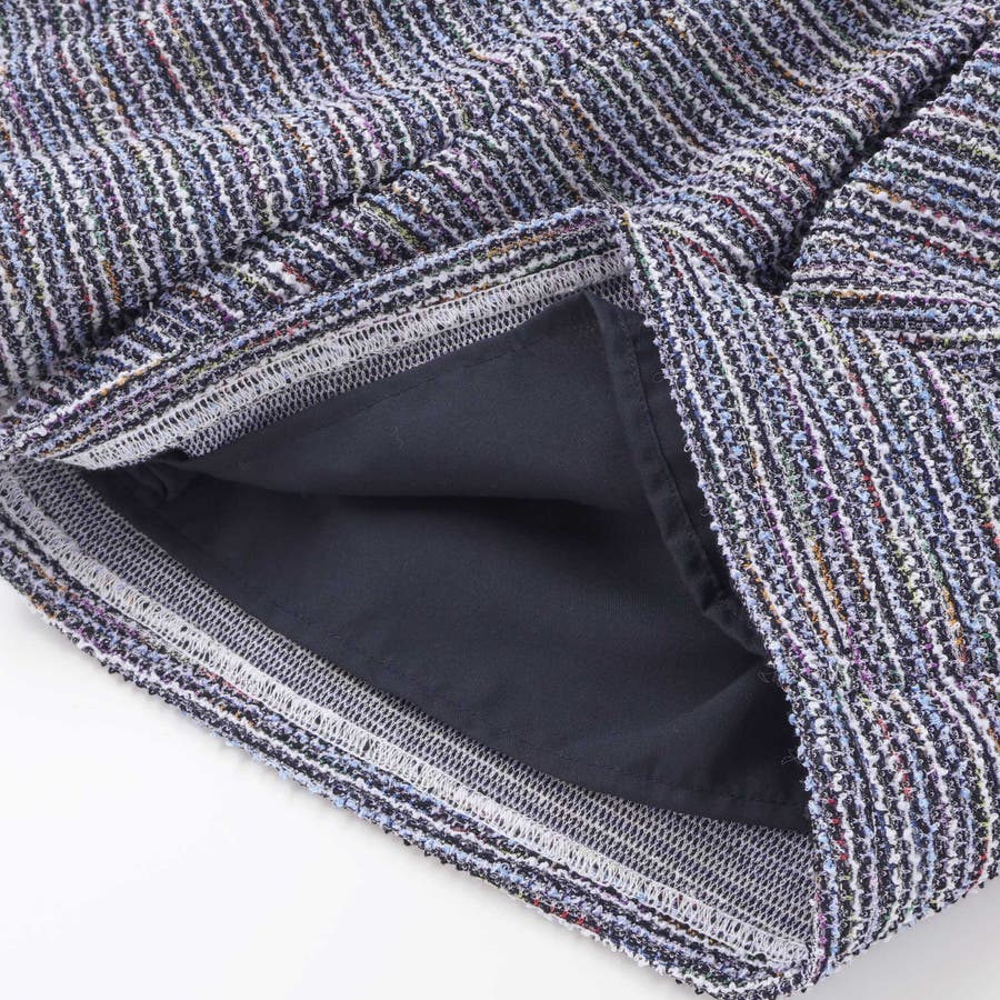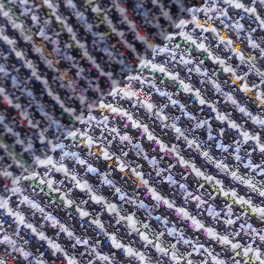 表地にはカラフルな糸が織り込まれたツイード調生地を使用し、華やかで季節感のある印象に。