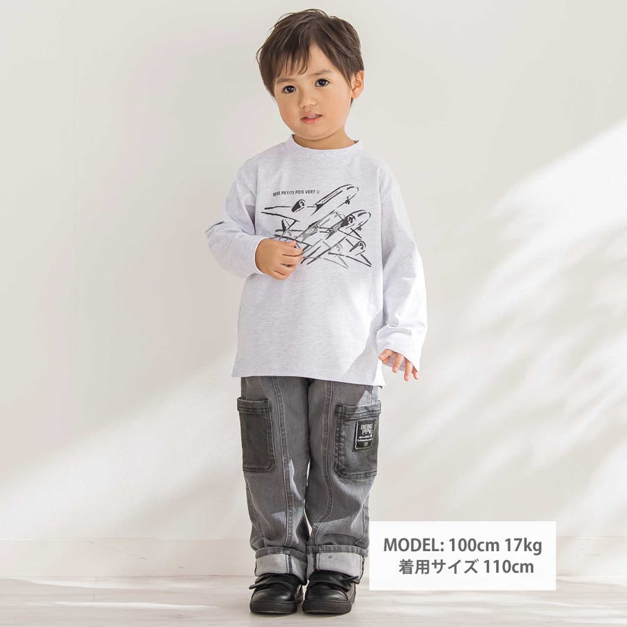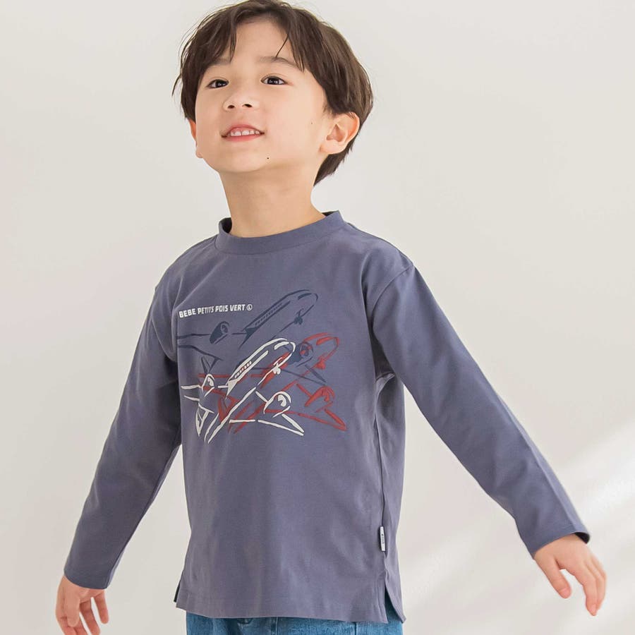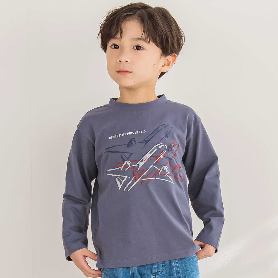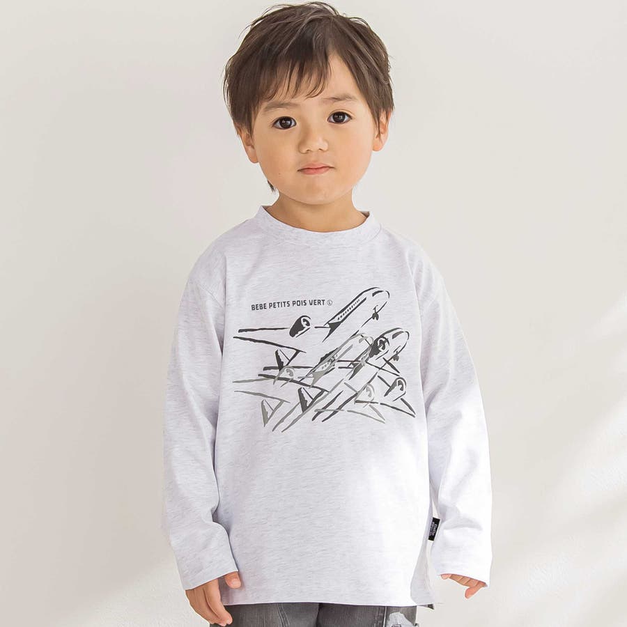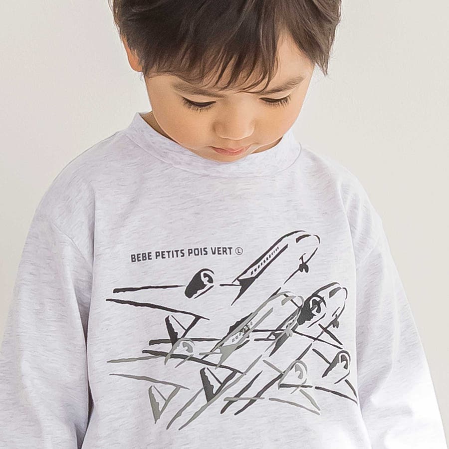 飛行機で空を駆けるデザイン!コーデの主役になる男の子用ロングTシャツ。