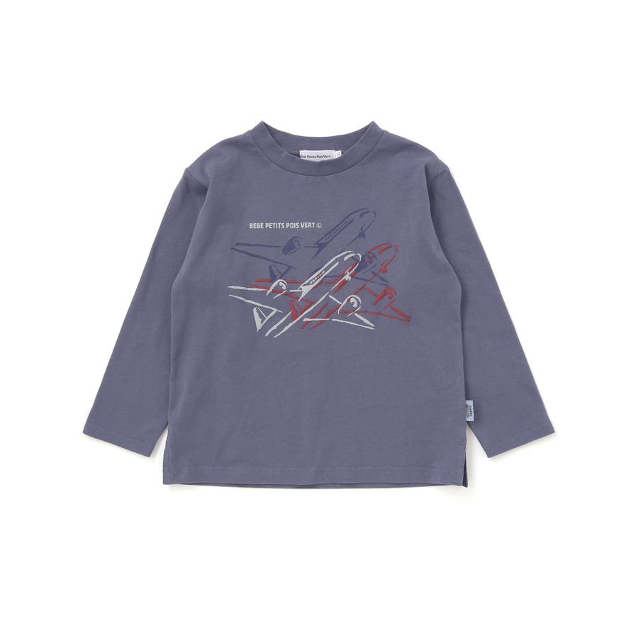 【店舗限定】飛行機発泡プリント天竺長袖Tシャツ(95~150cm)