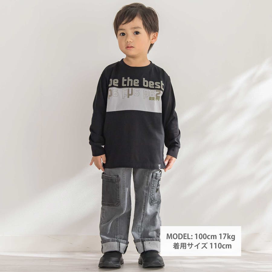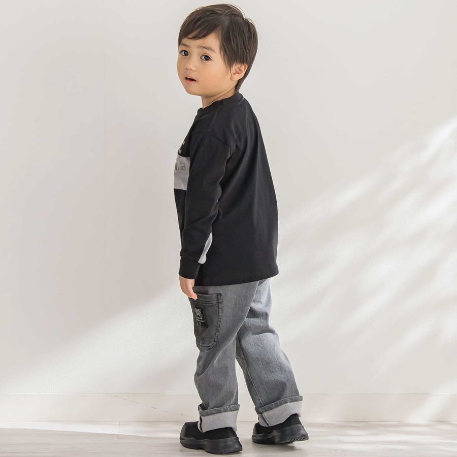 【店舗限定】フロッキープリント切り替え天竺長袖Tシャツ(95~150cm)
