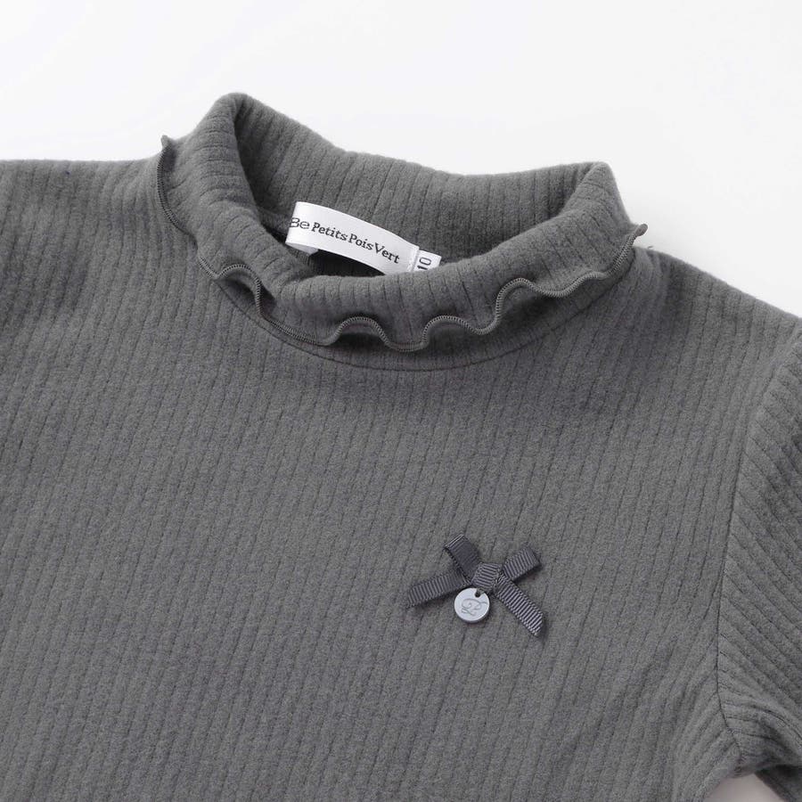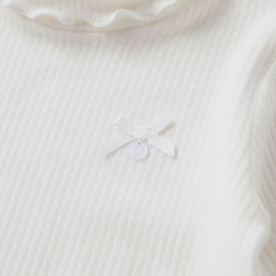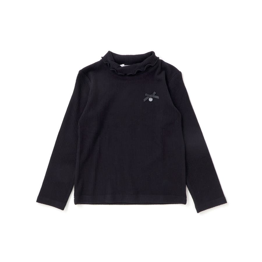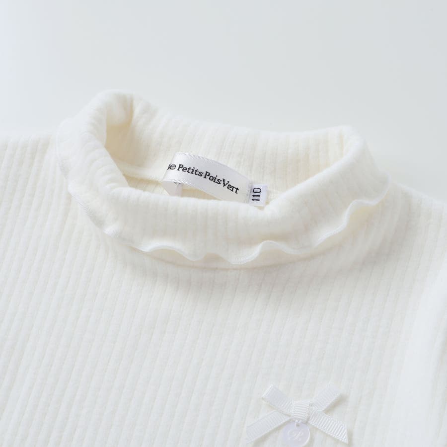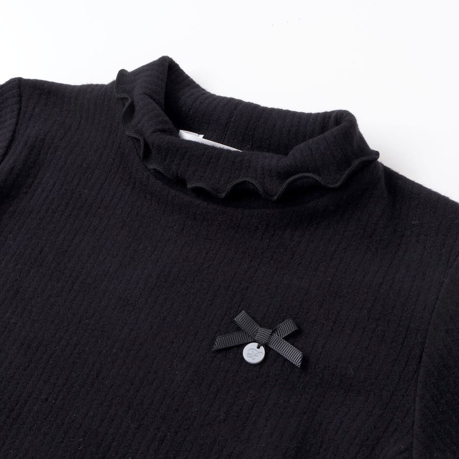 折り返しハイネック×リボンチャームが可愛い、女の子用起毛リブトップス