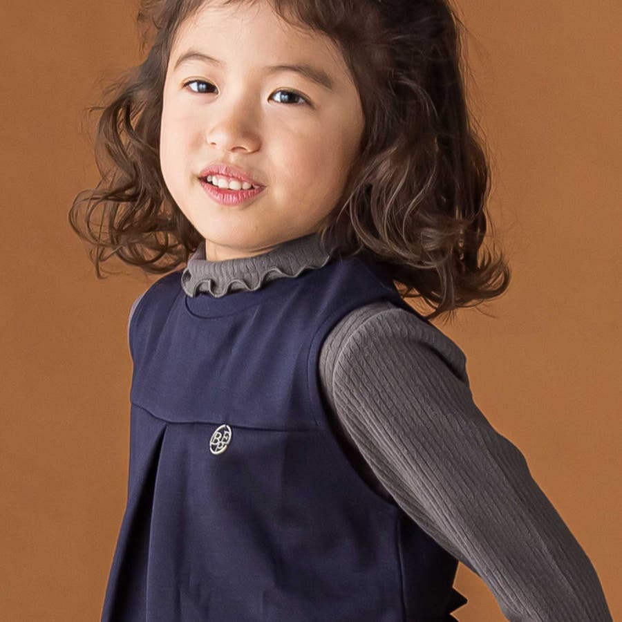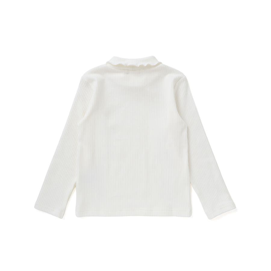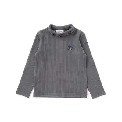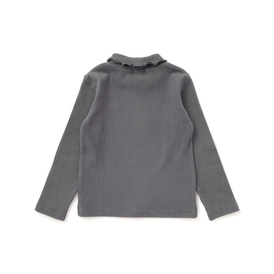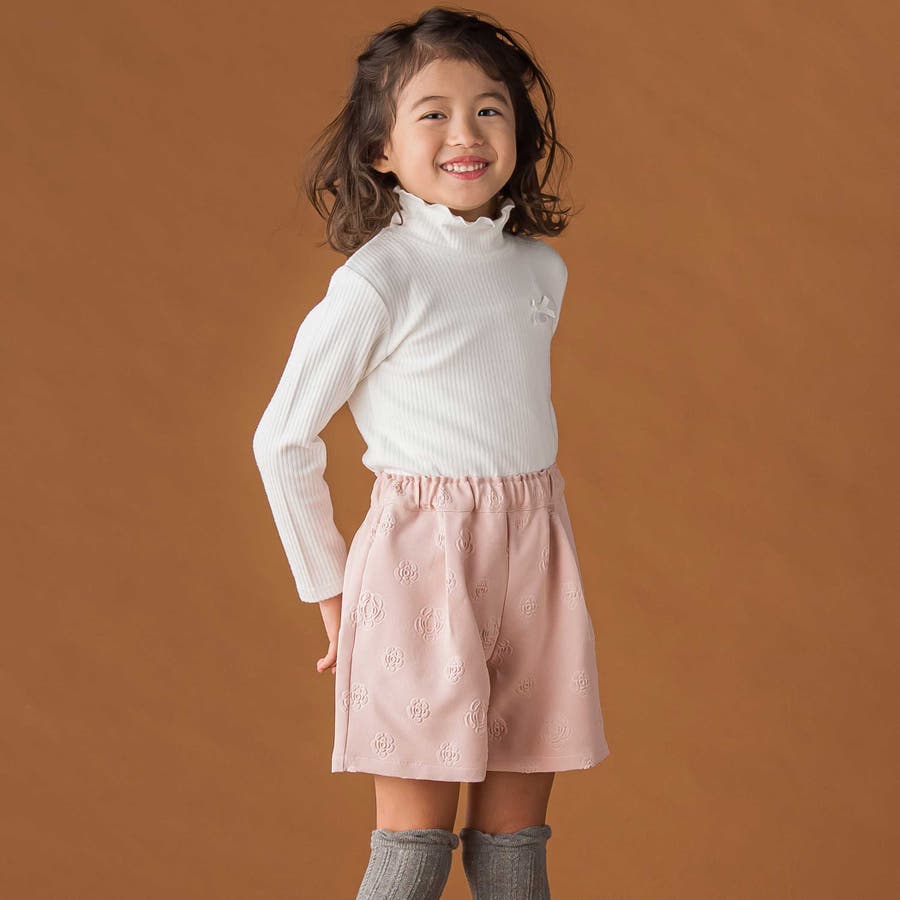 折り返しハイネック×リボンチャームが可愛い、女の子用起毛リブトップス