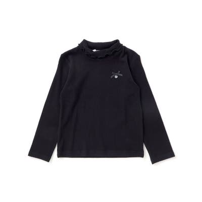 折り返されたハイネックにメロウ仕上げを施した、女の子用長袖トップス。