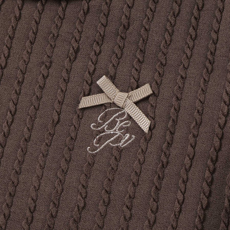 胸元にはロゴ刺しゅうとリボンが施されていて、さりげないアクセントに。