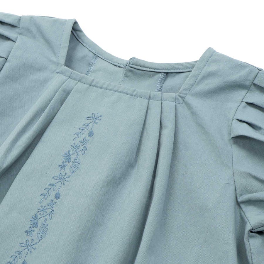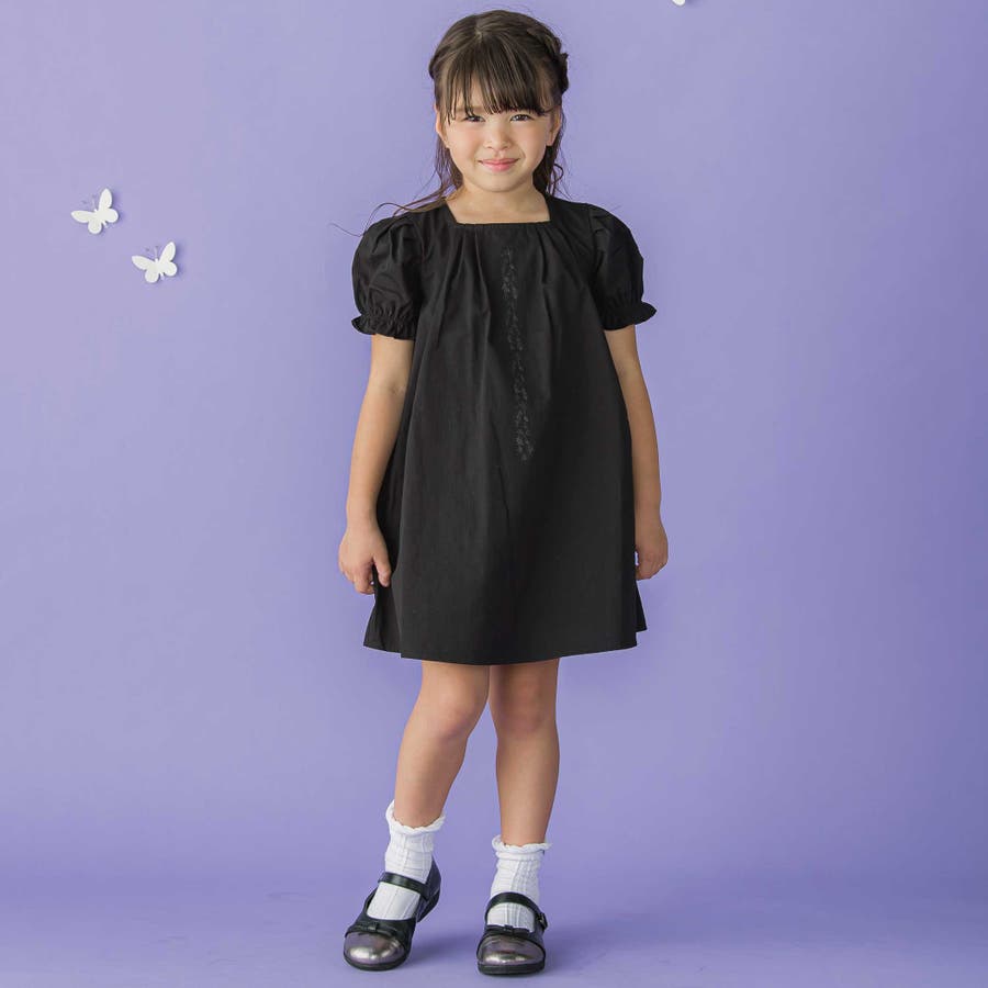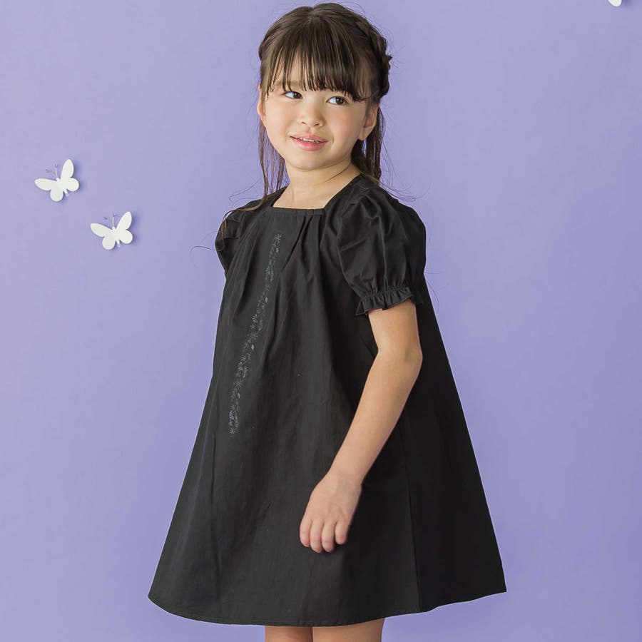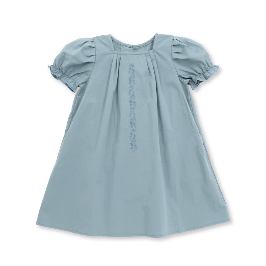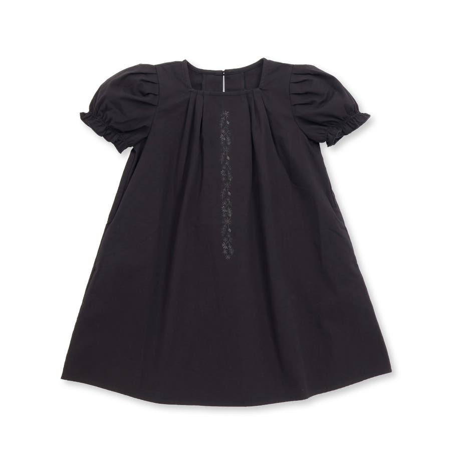 フロント刺しゅうタックパフスリーブワンピース(95~150cm)