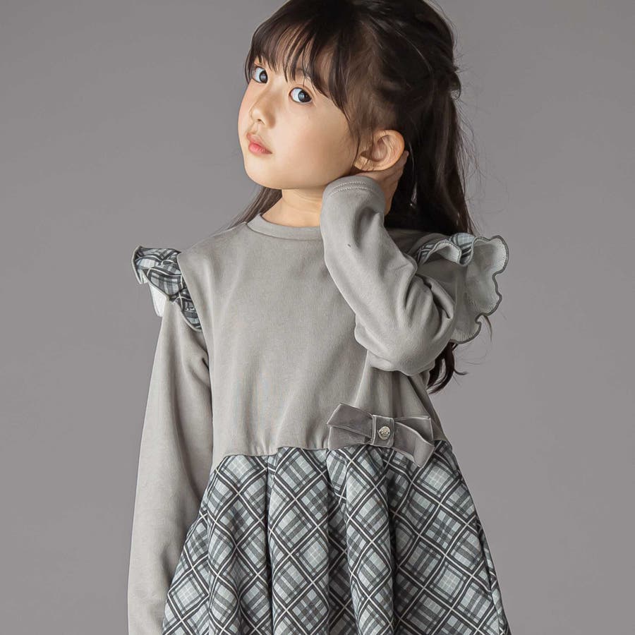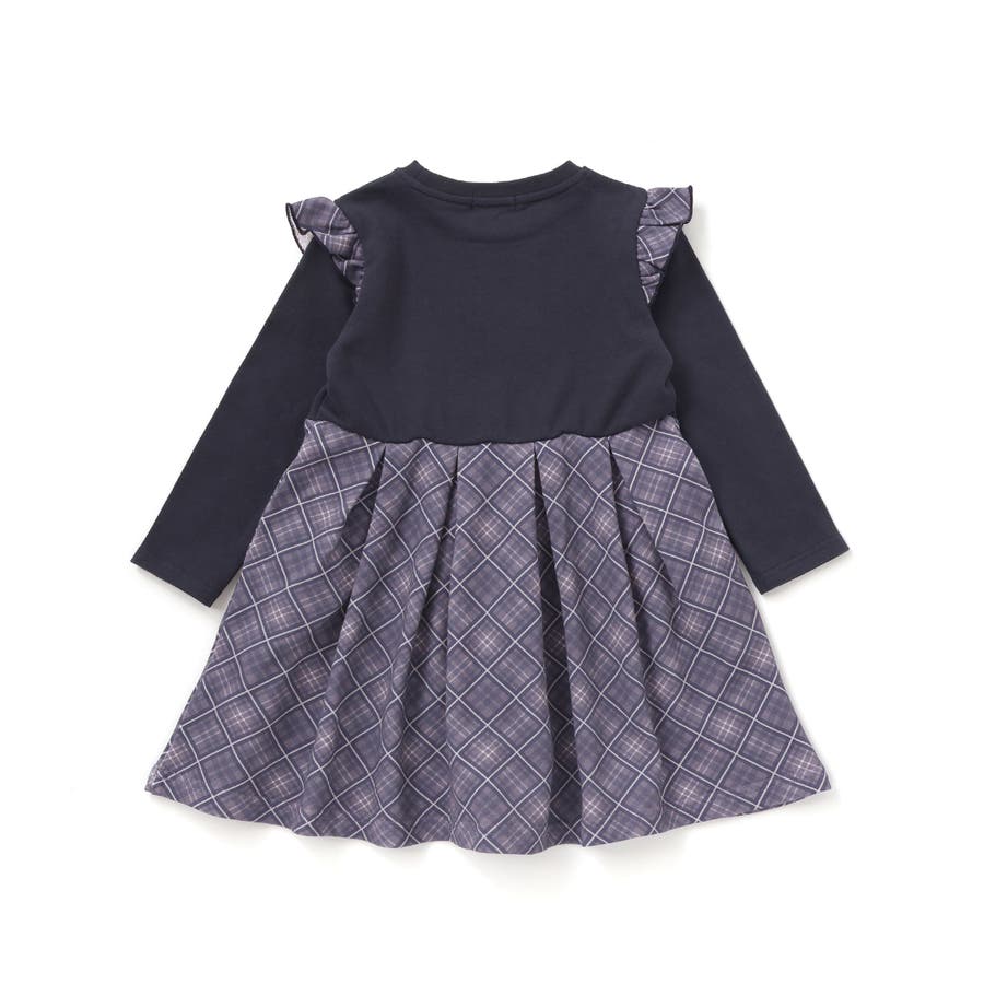 肩フリルのチェック柄裏毛が可愛い着心地の良い女の子用ワンピース。