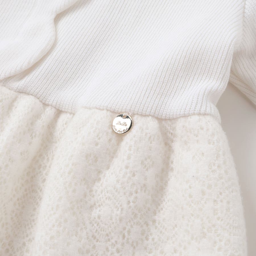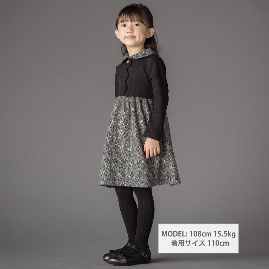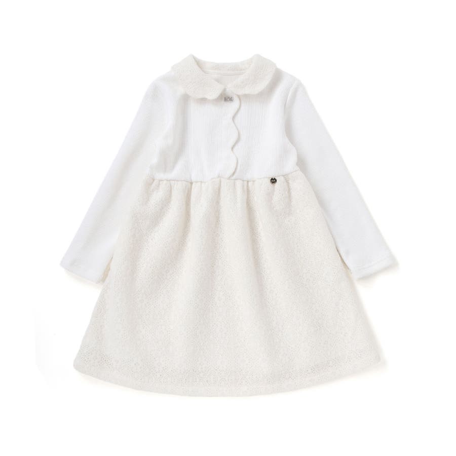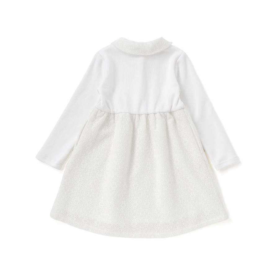 ニットリブ+レース起毛ドッキング長袖ワンピース(95~150cm)