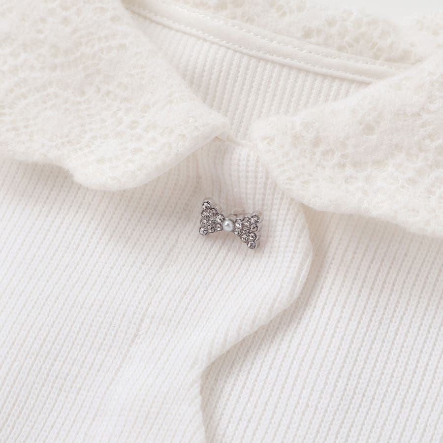 胸元のキラキラリボン釦がアクセントのおしゃれなワンピース。