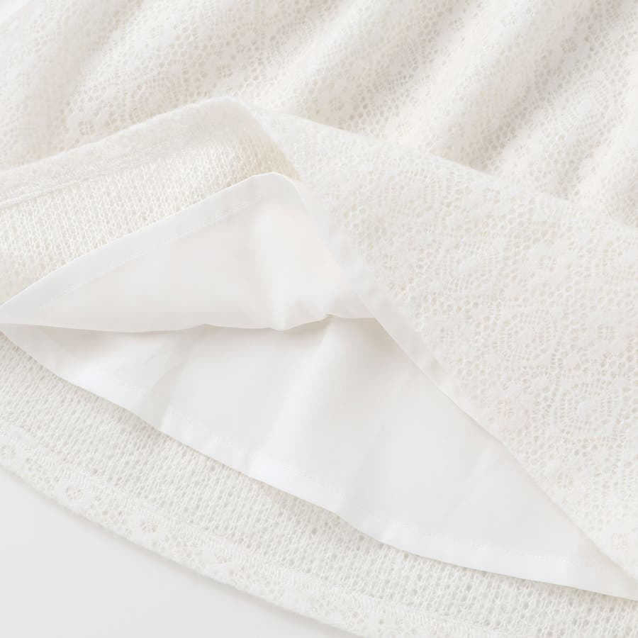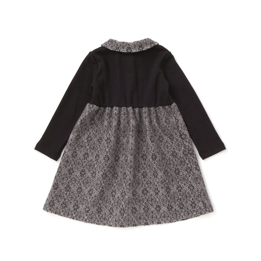 襟とスカート部分のレース起毛素材がかわいい1着です。