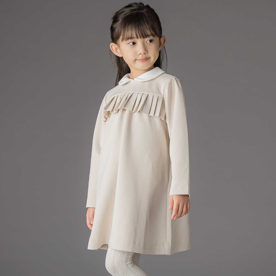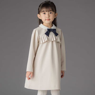 ポンチ胸プリーツ長袖ワンピース(95~150cm)