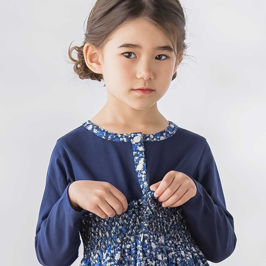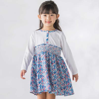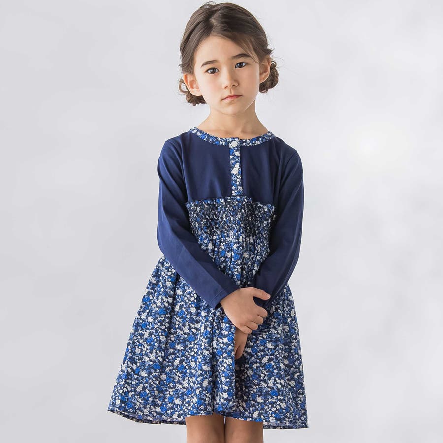 天竺+小花シャーリング長袖ワンピース(95~150cm)