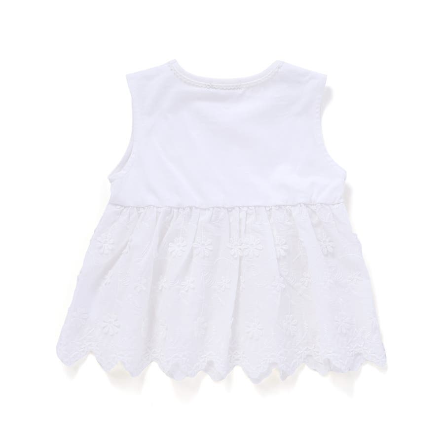 首元のさりげないアイレットピコレースと胸元のチャームもポイントに。