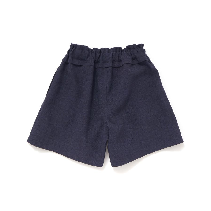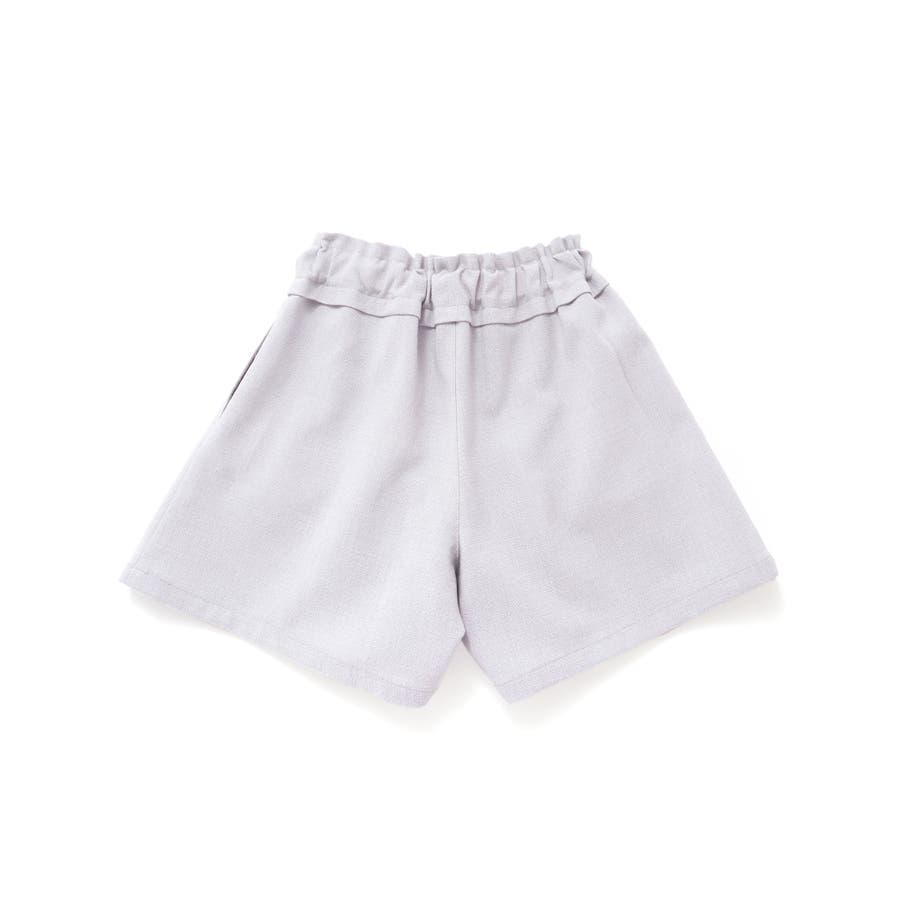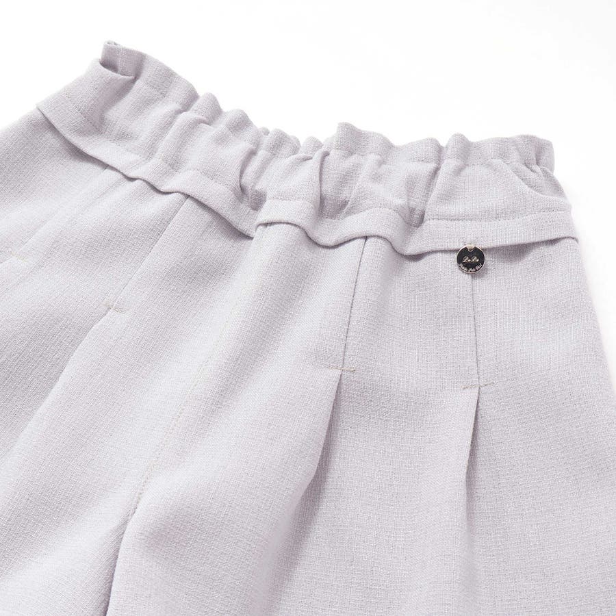 ボトムはタックが入ったふんわりシルエットのキュロットパンツ。