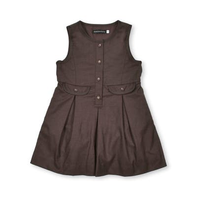 スカートに施した綺麗めタックとコロンとしたフォルムのフラップ(飾り)がポイントの大人可愛いワンピースとなっております。