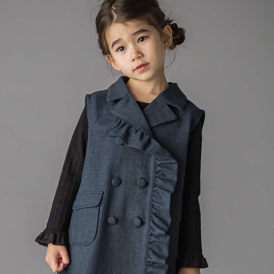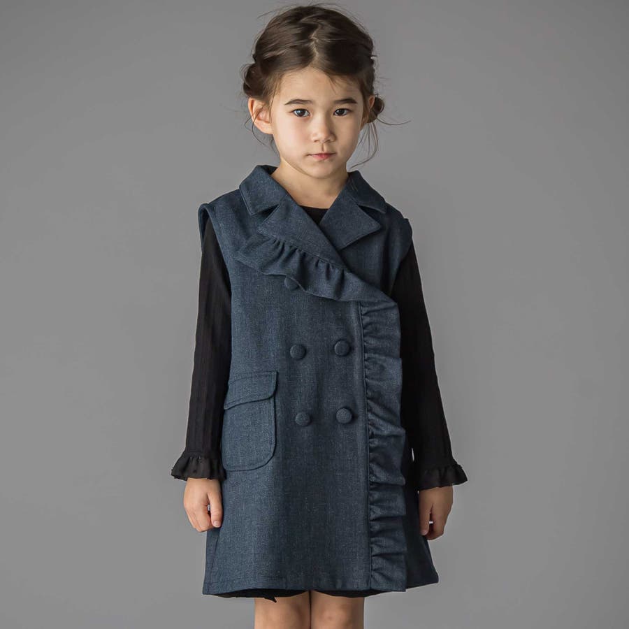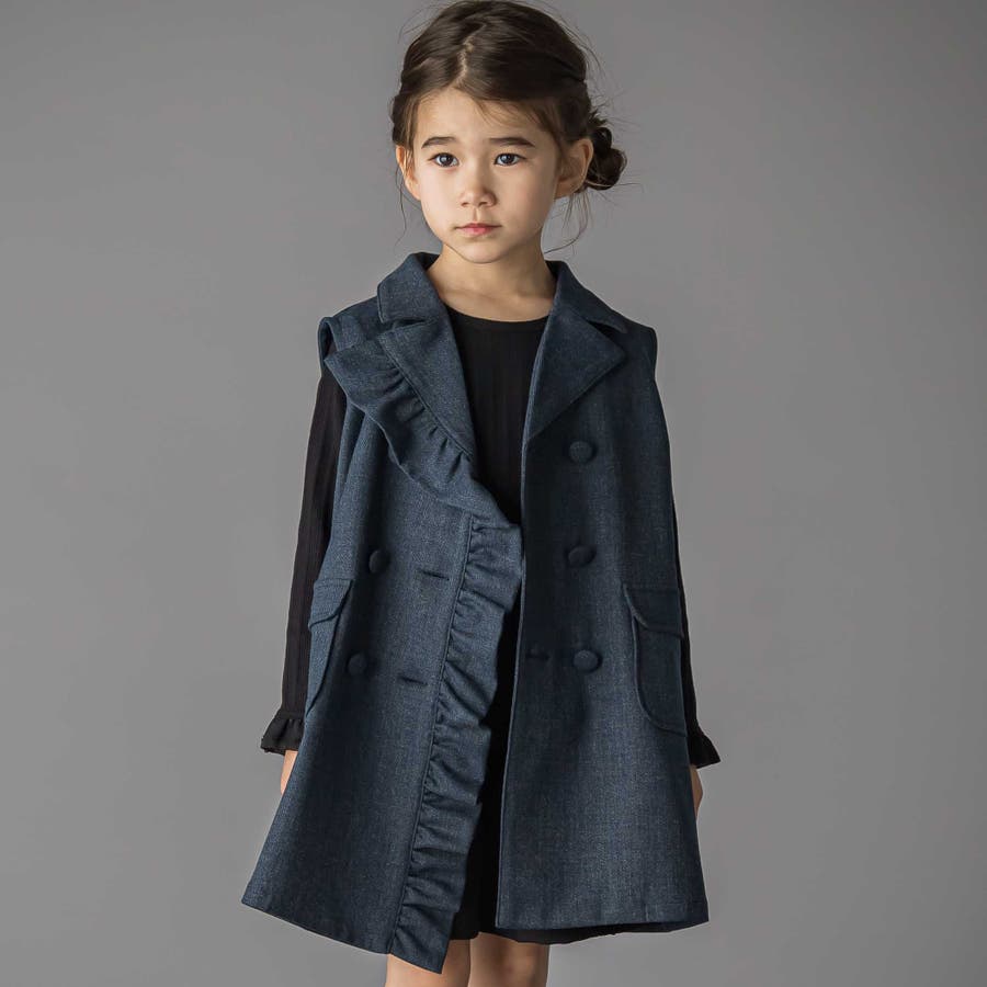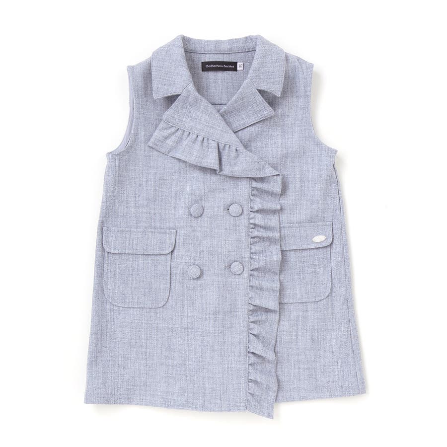 トレンチをイメージさせるデザインにフリルが付いたジレ。