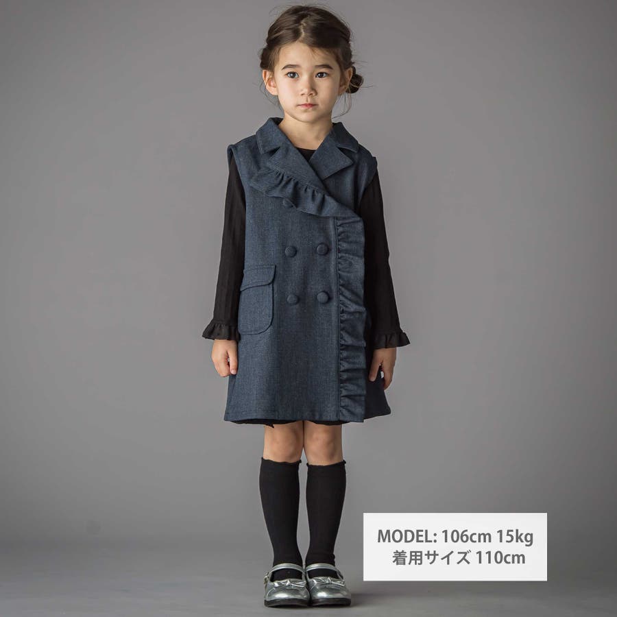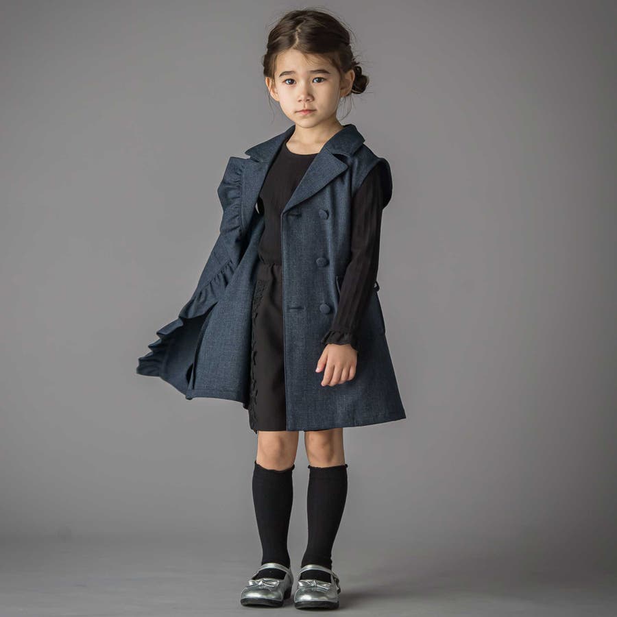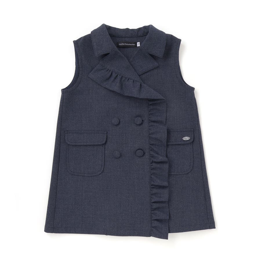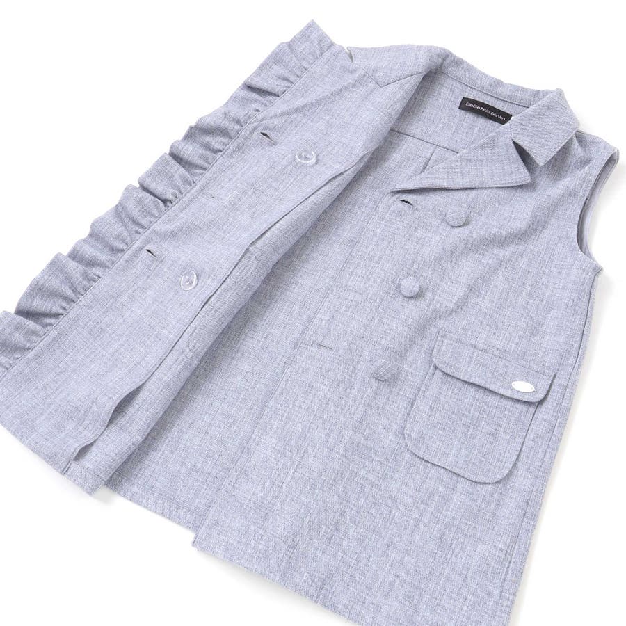 トレンチをイメージさせるデザインにフリルが付いたジレ。