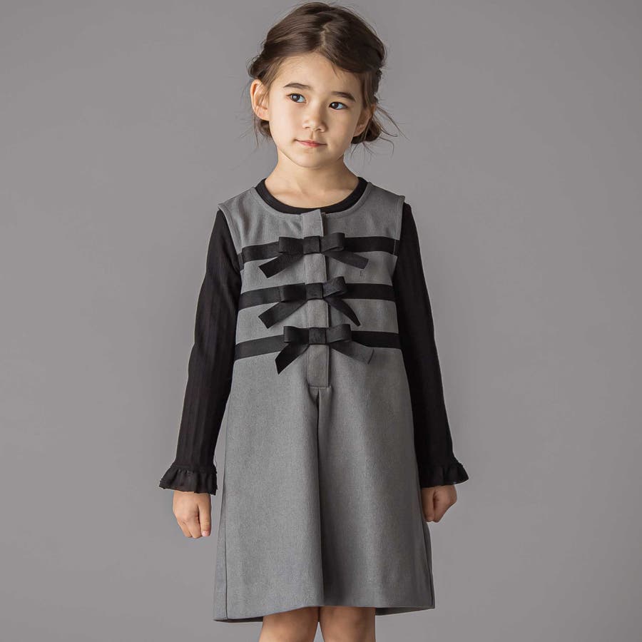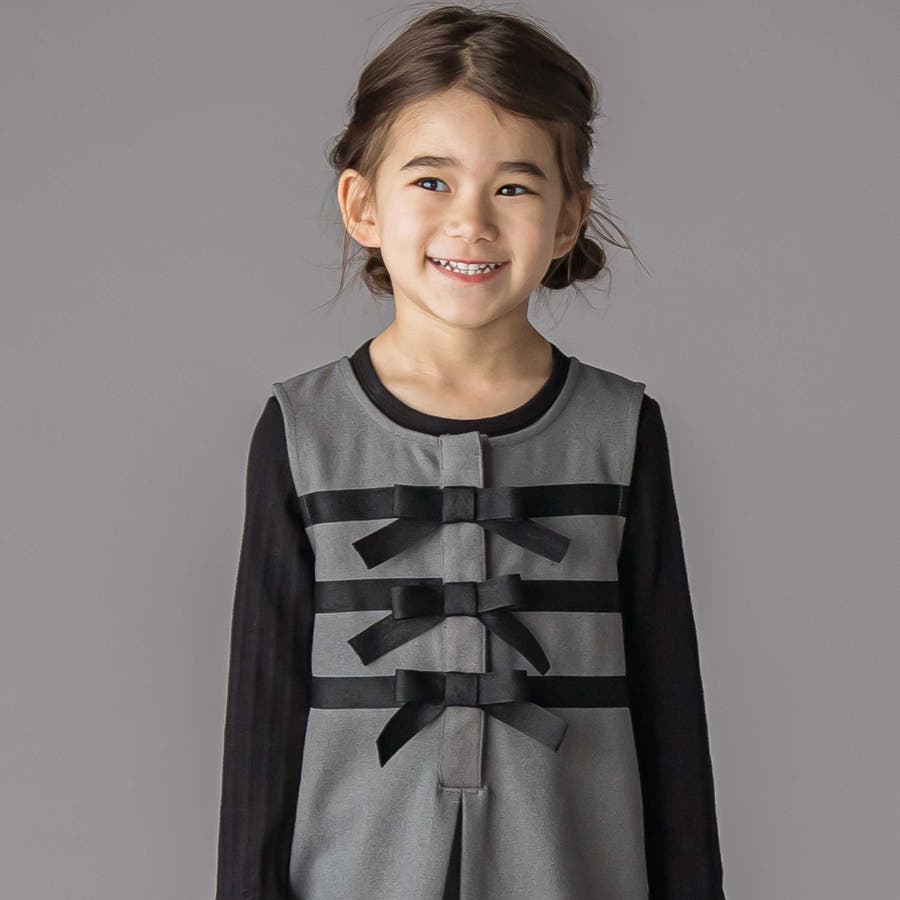 3段リボンAラインジャンパースカート(95~150cm)