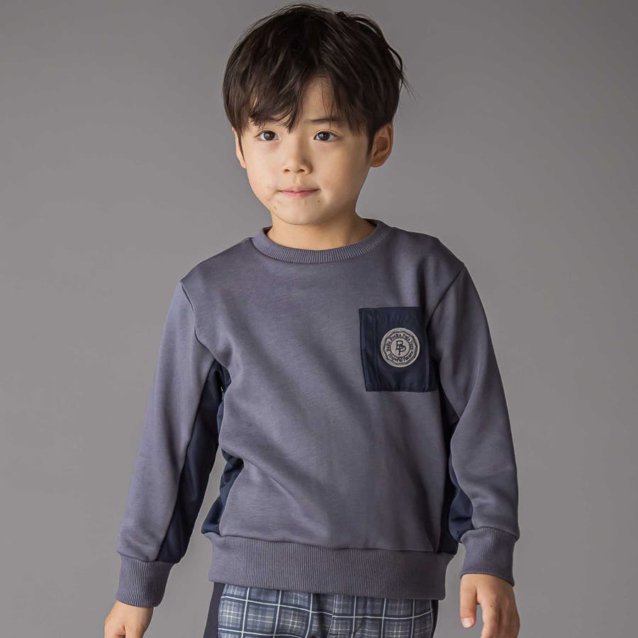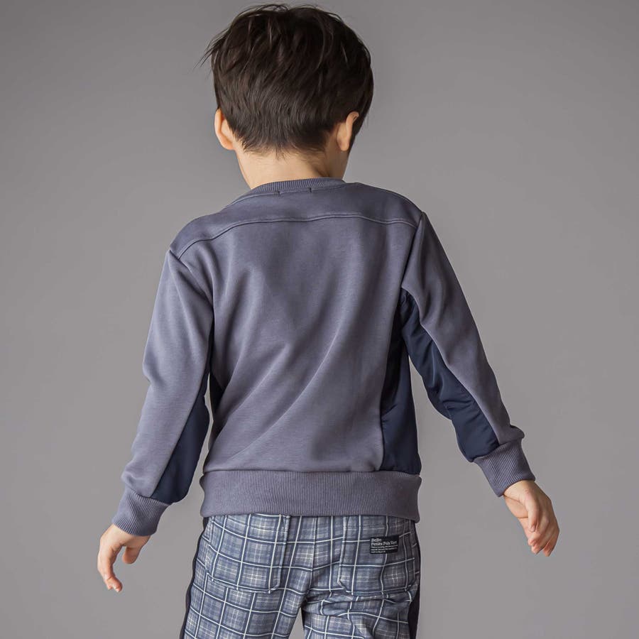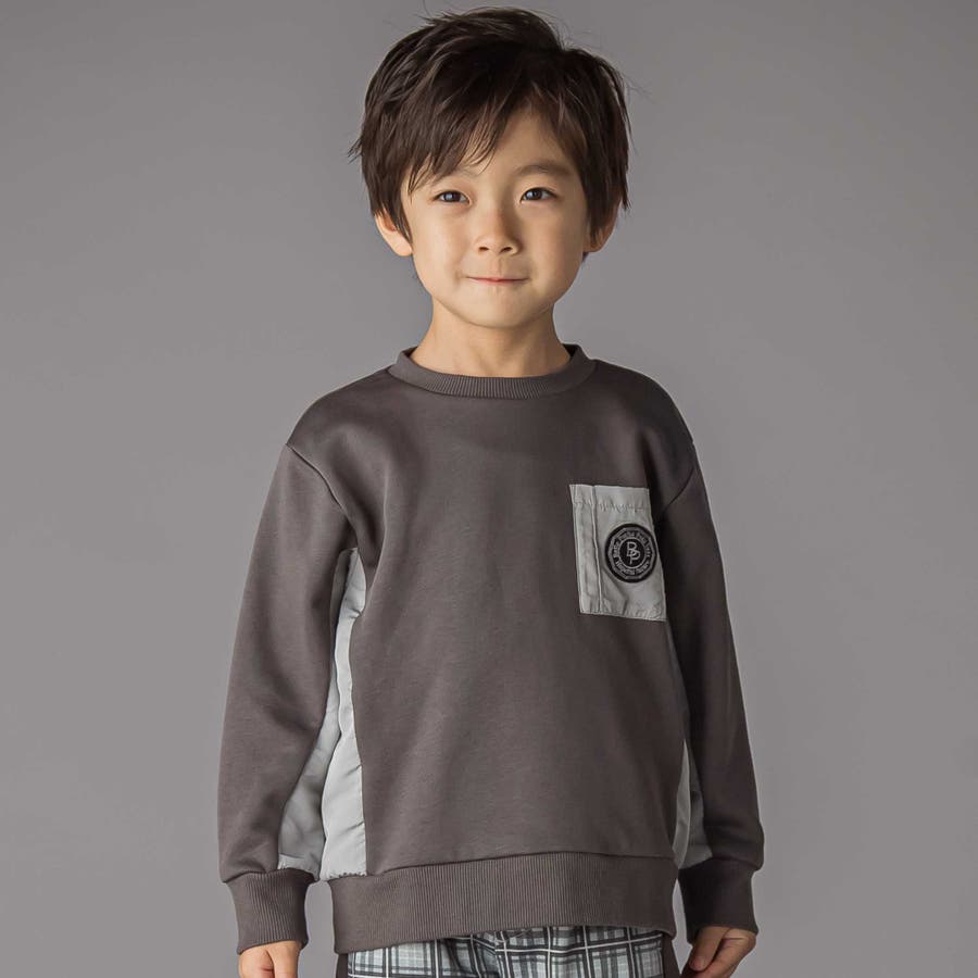 異素材配色切り替えが新鮮な男の子用トレーナー。