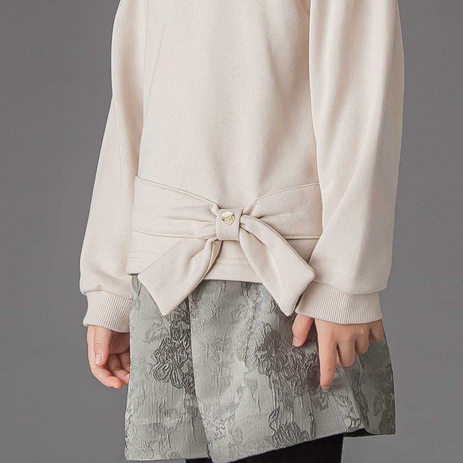 裾のリボンが可愛い裏毛長袖トレーナー。
