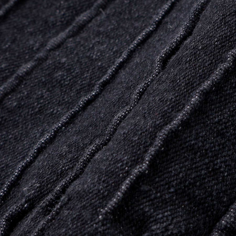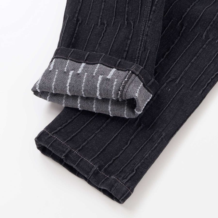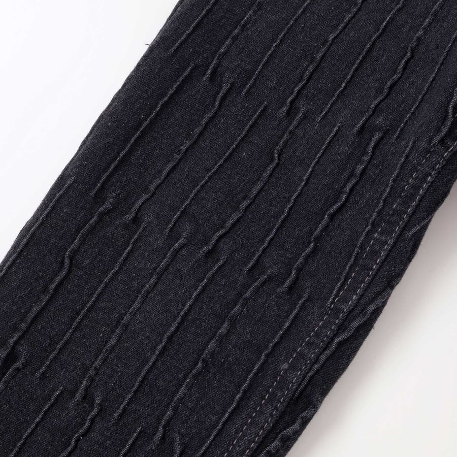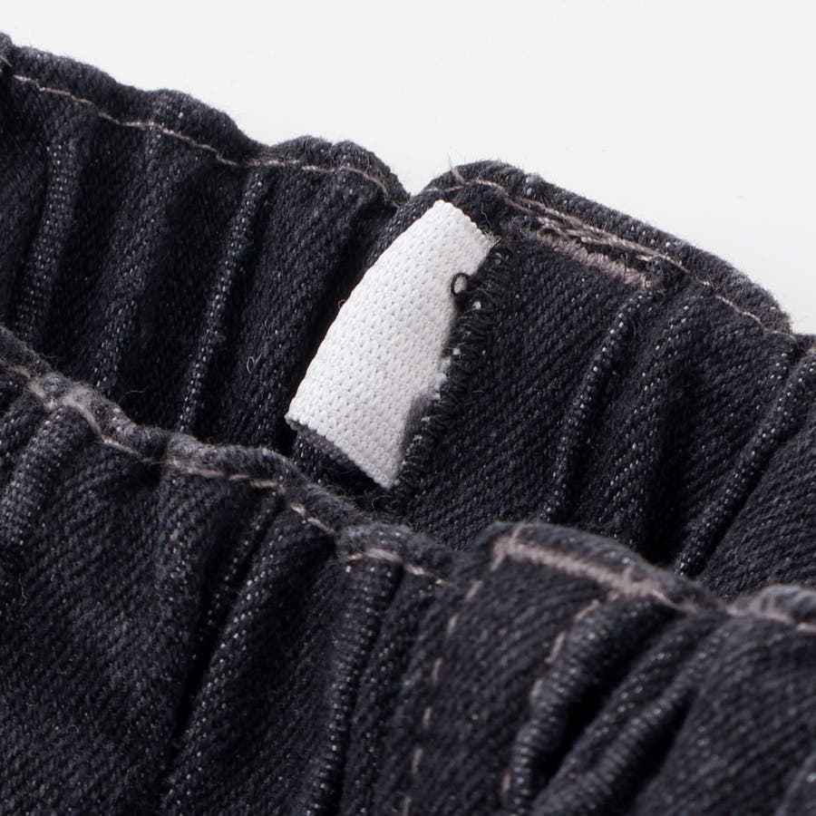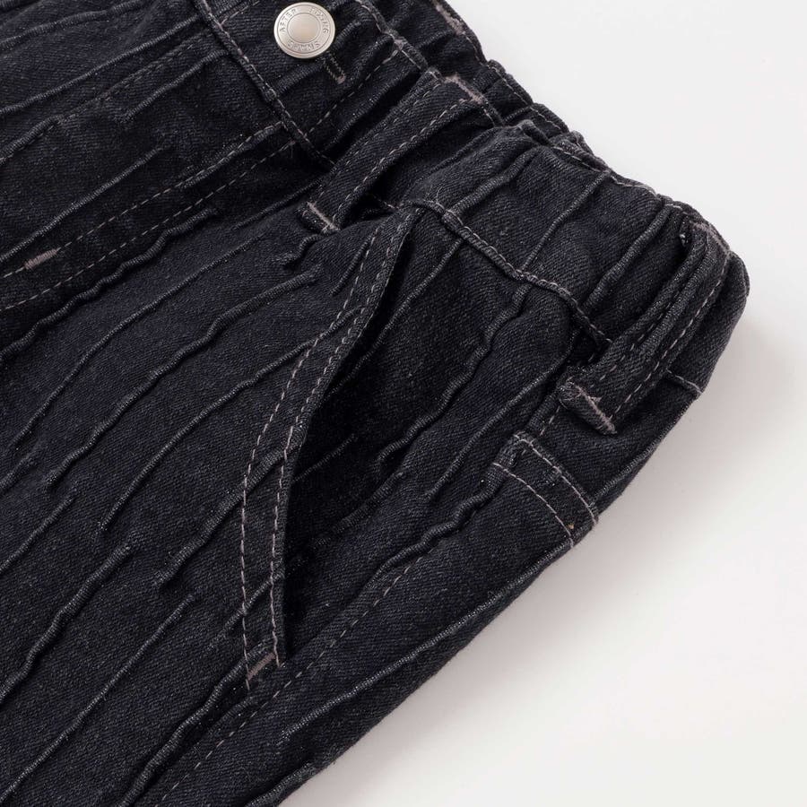 タック加工が印象的な天板シルエットのデニムパンツ。