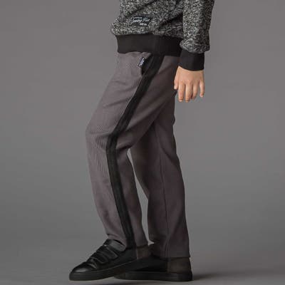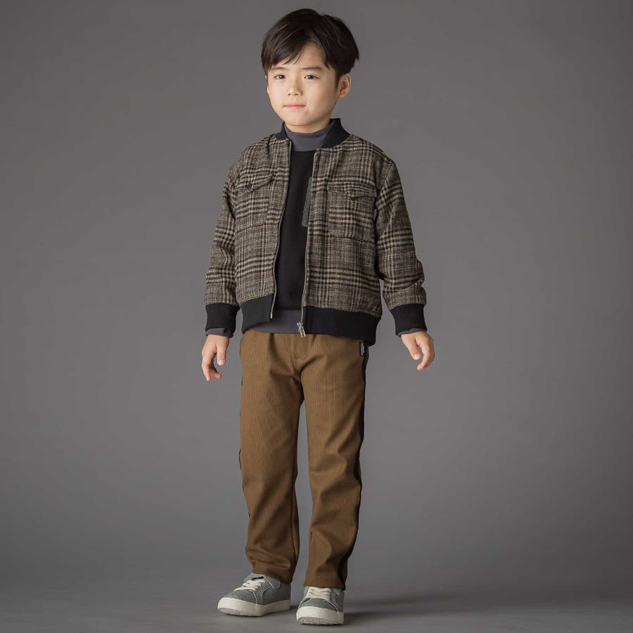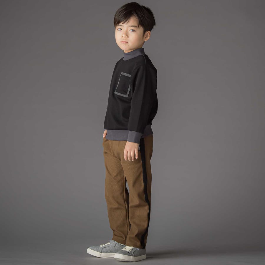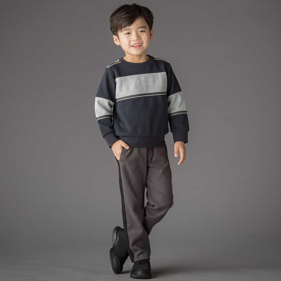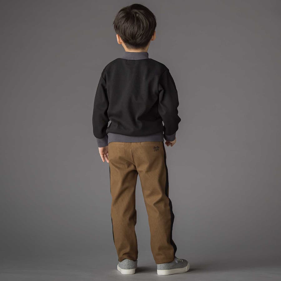 サイドテープがアクセントのコーデュロイ見えする男の子用ロングパンツ。