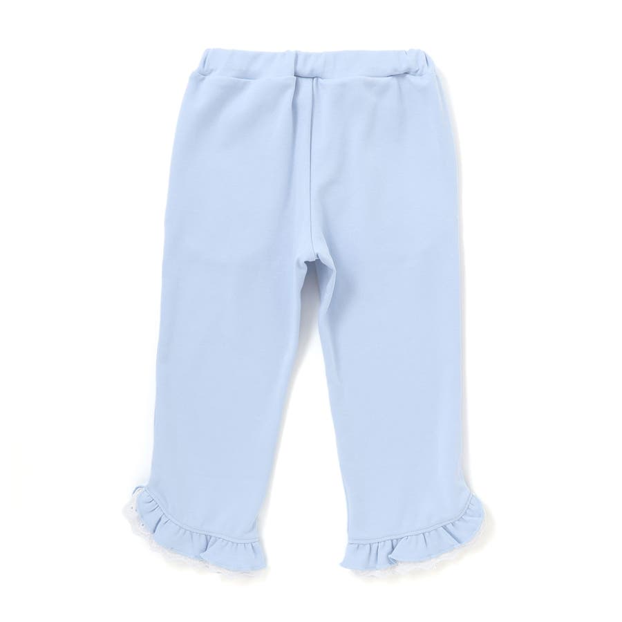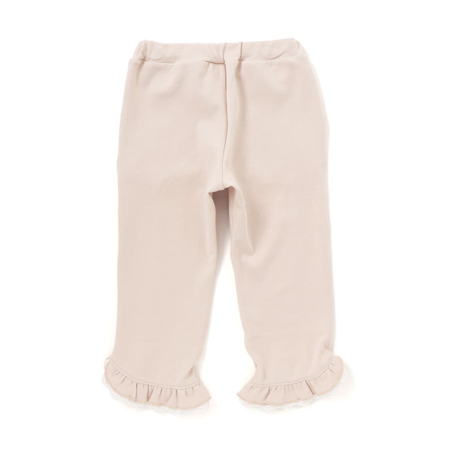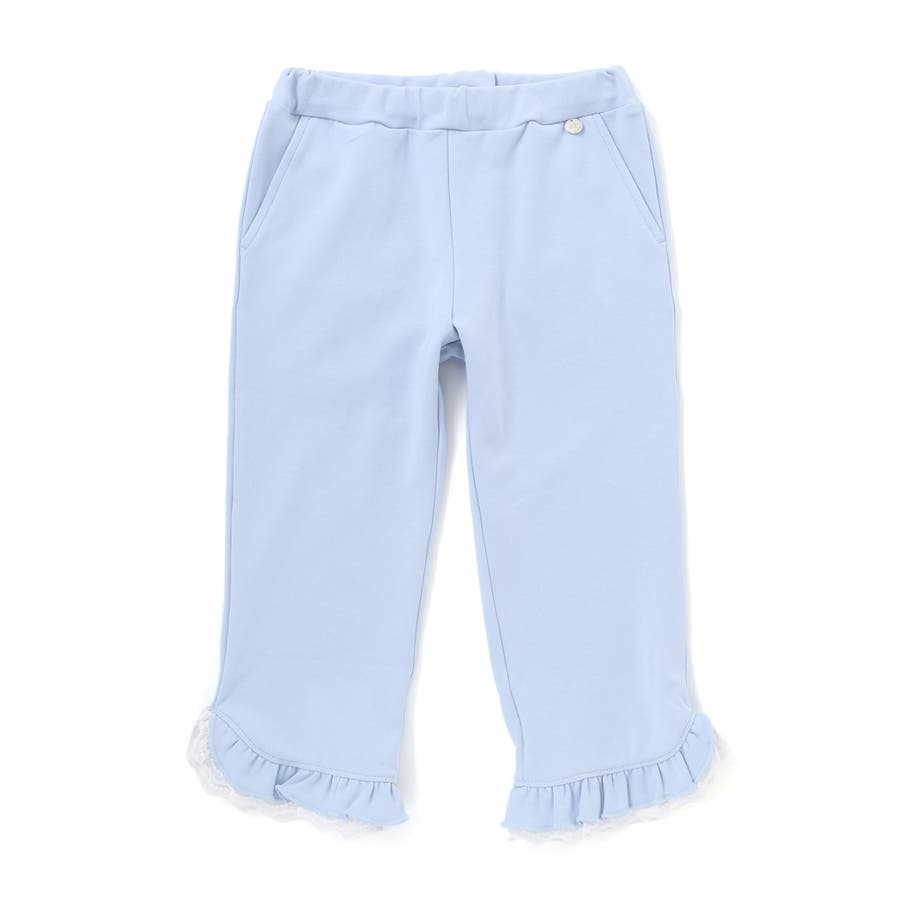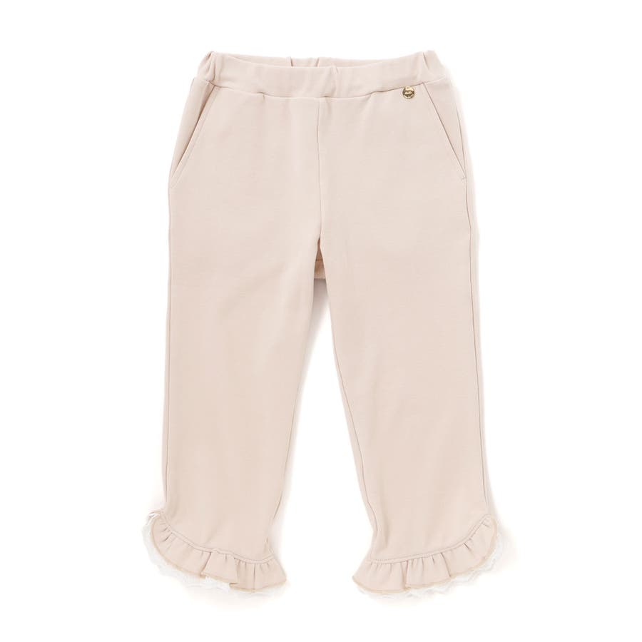裾のフリルとレース使いが可愛らしい、女の子らしさ満点のストレートパンツ。