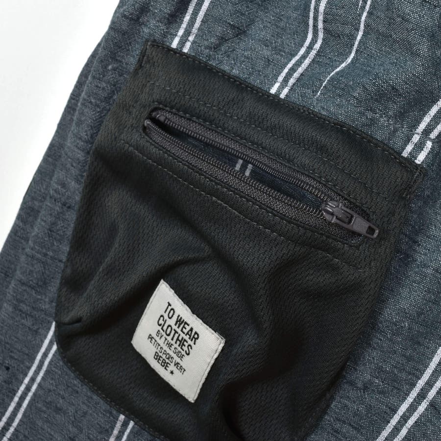 【ネイビー系】ストライプダンガリーハーフパンツ(95~150cm)