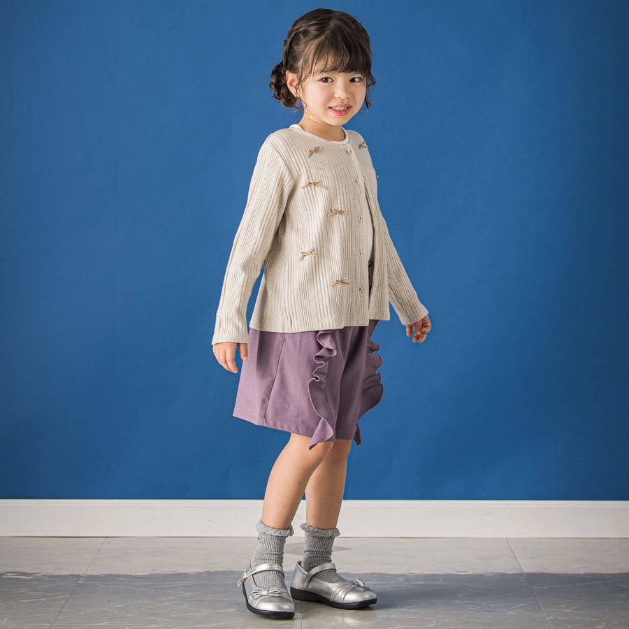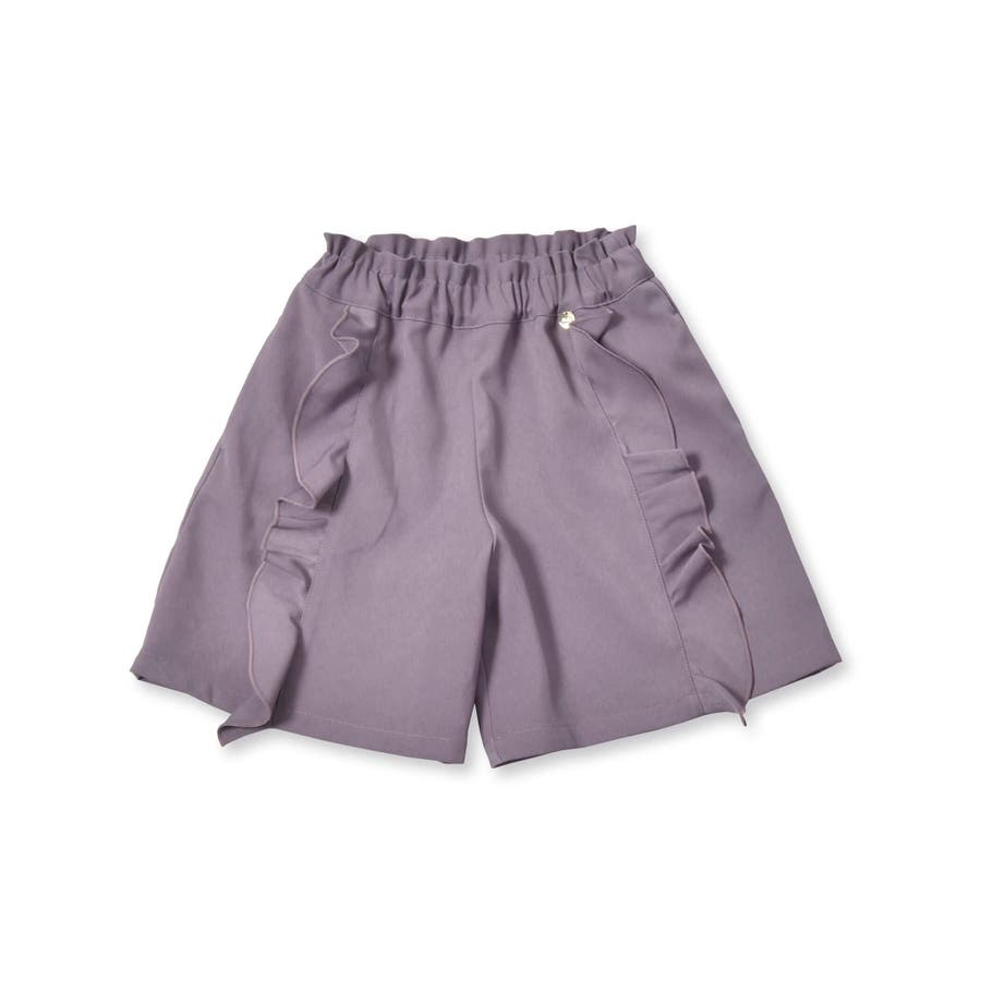 【パープル】異素材フリルキュロットパンツ(95~150cm)