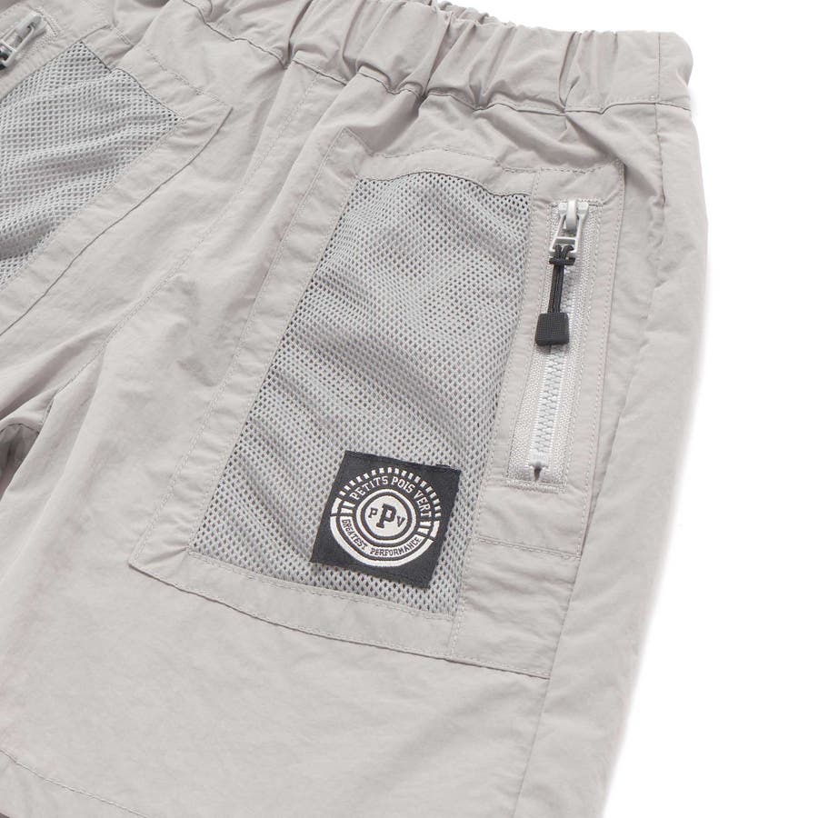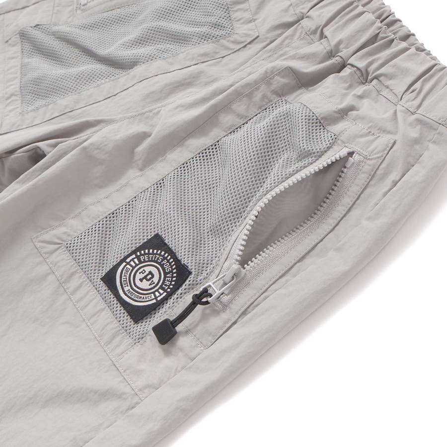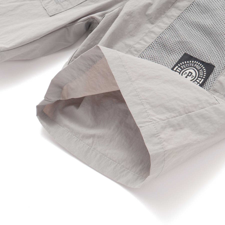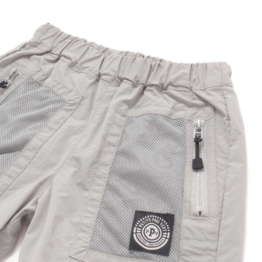 ファスナー付きのメッシュポケットが涼し気な張り感のあるハーフパンツ。
