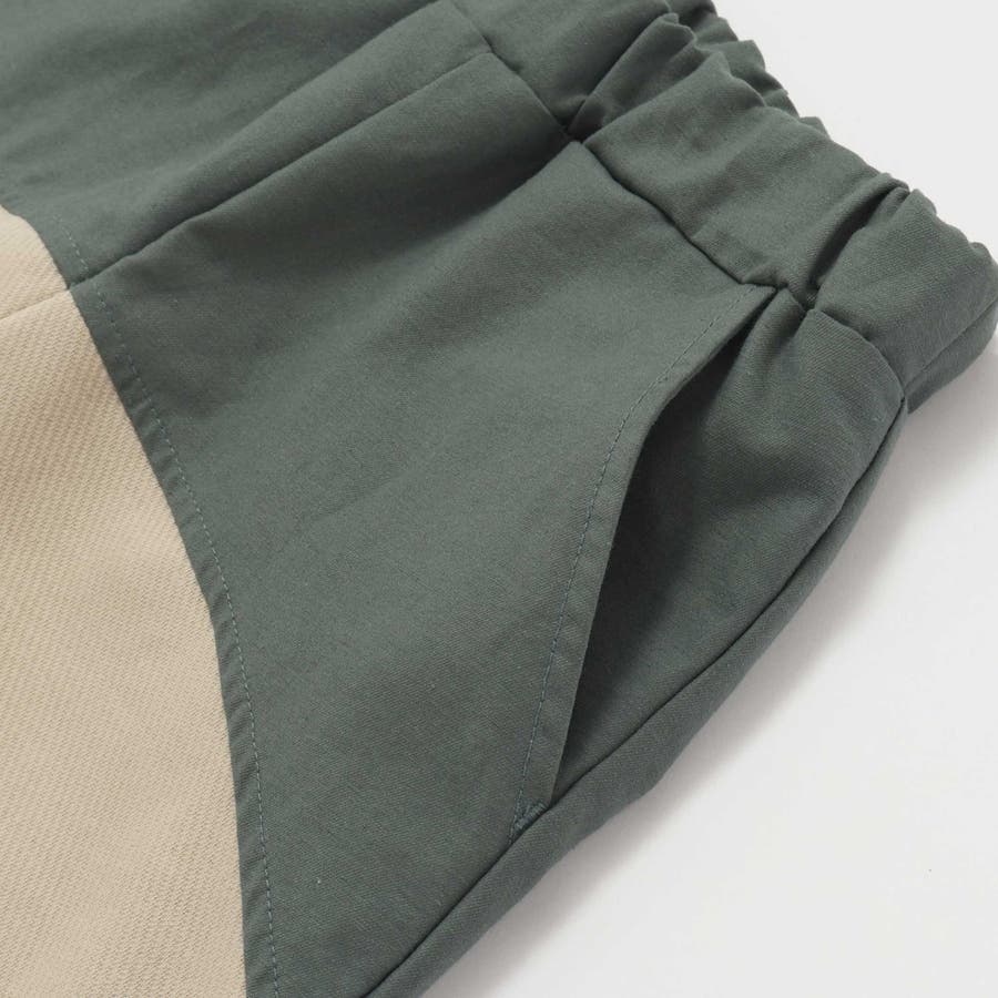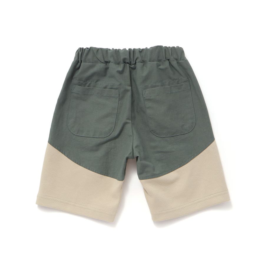 布帛×カットソーの切り替えでデザイン性や動きやすさを両立したハーフパンツ。