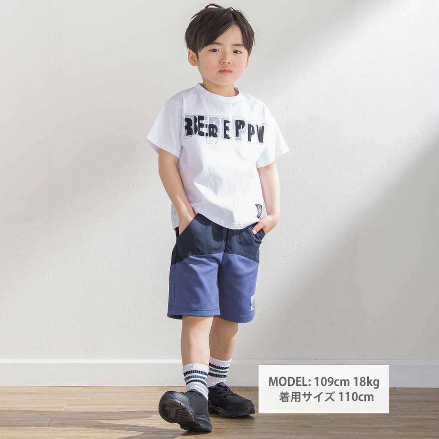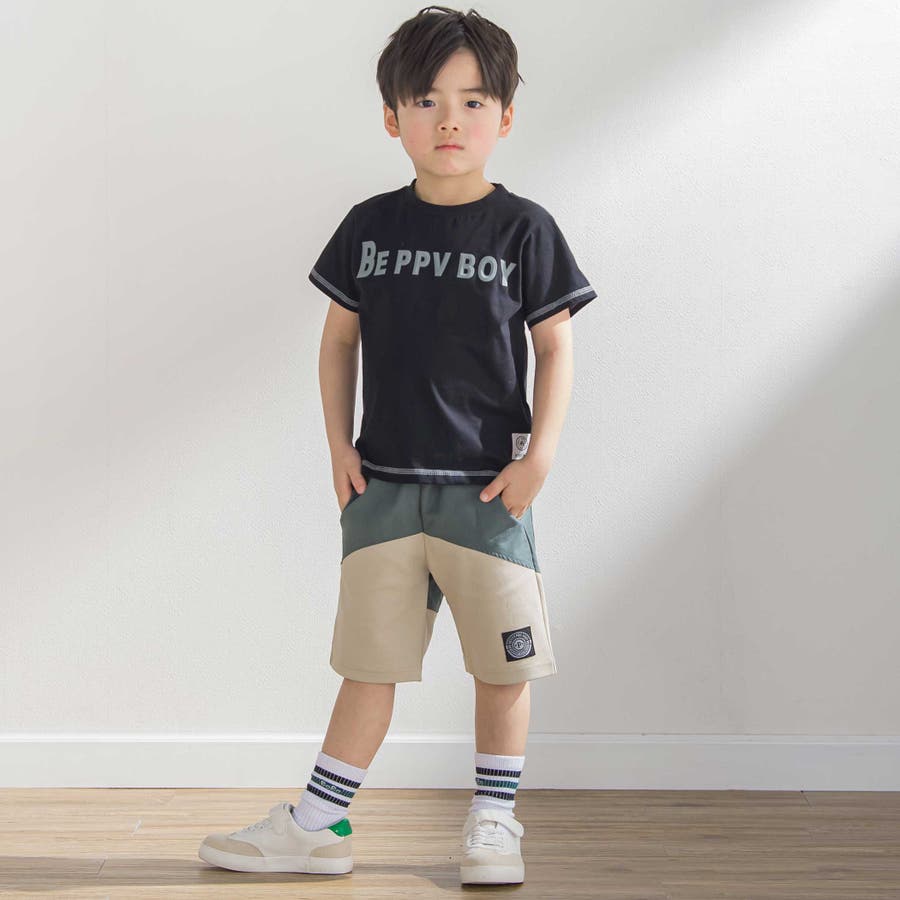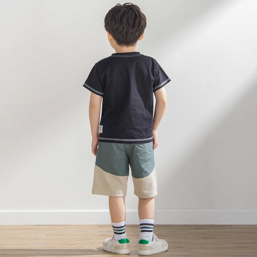 斜めカットソー布帛切り替え5分丈パンツ(95~160cm)
