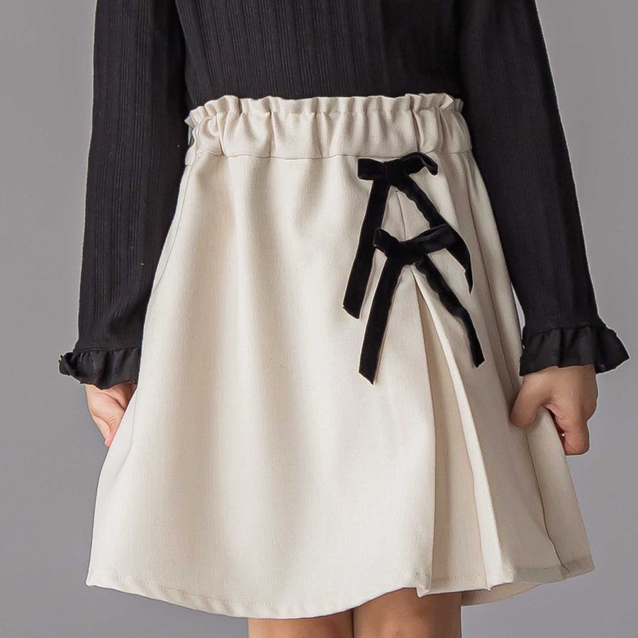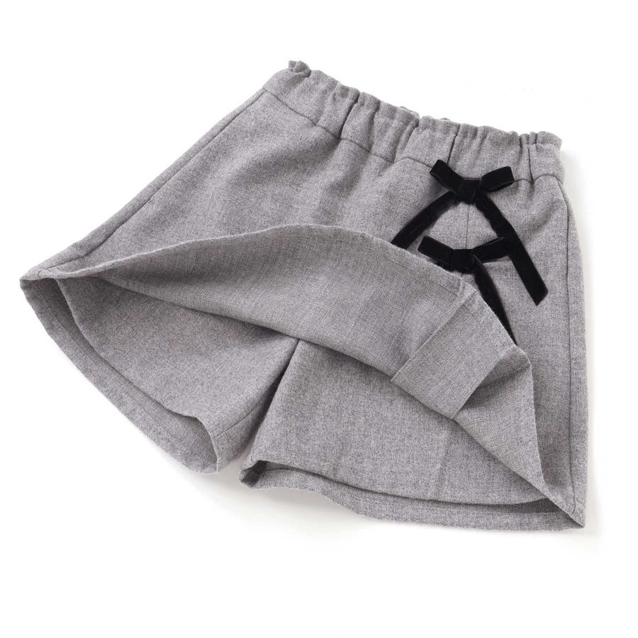 Wリボンが可愛い巻きスカート風のキュロットパンツ。