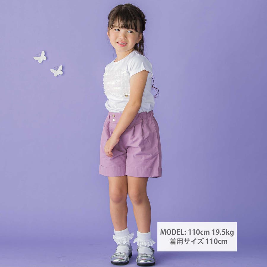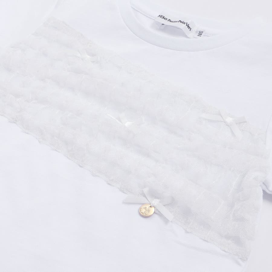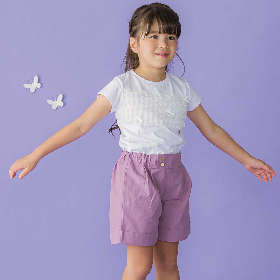 チュールリボン切り替え天竺半袖Tシャツ(95~150cm)