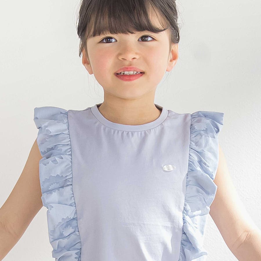 花柄シースルーフリルノースリーブTシャツ(95~150cm)