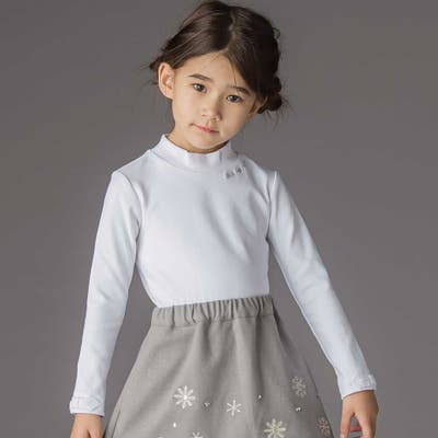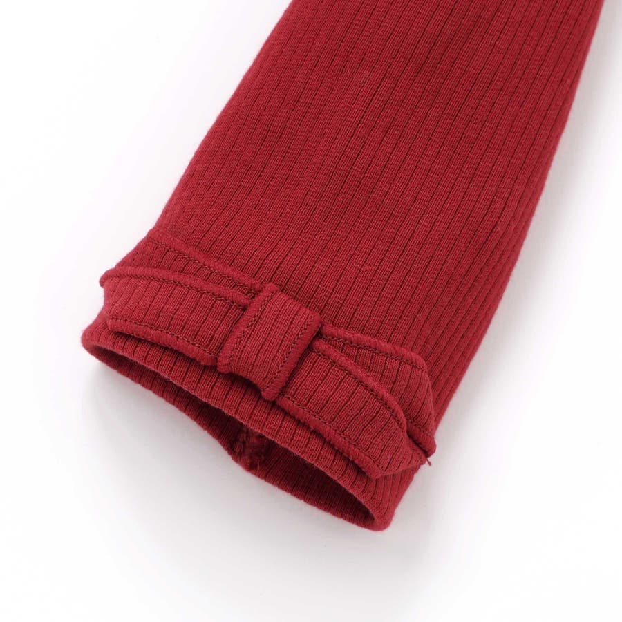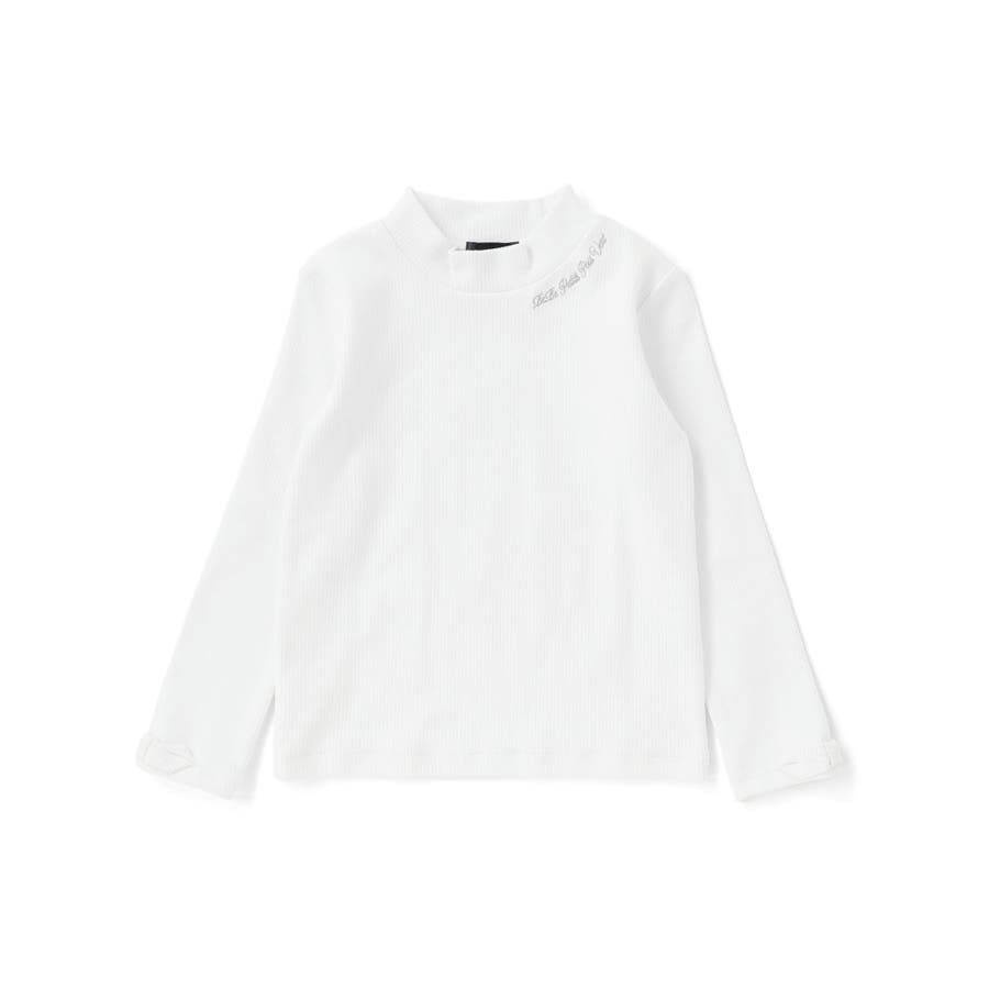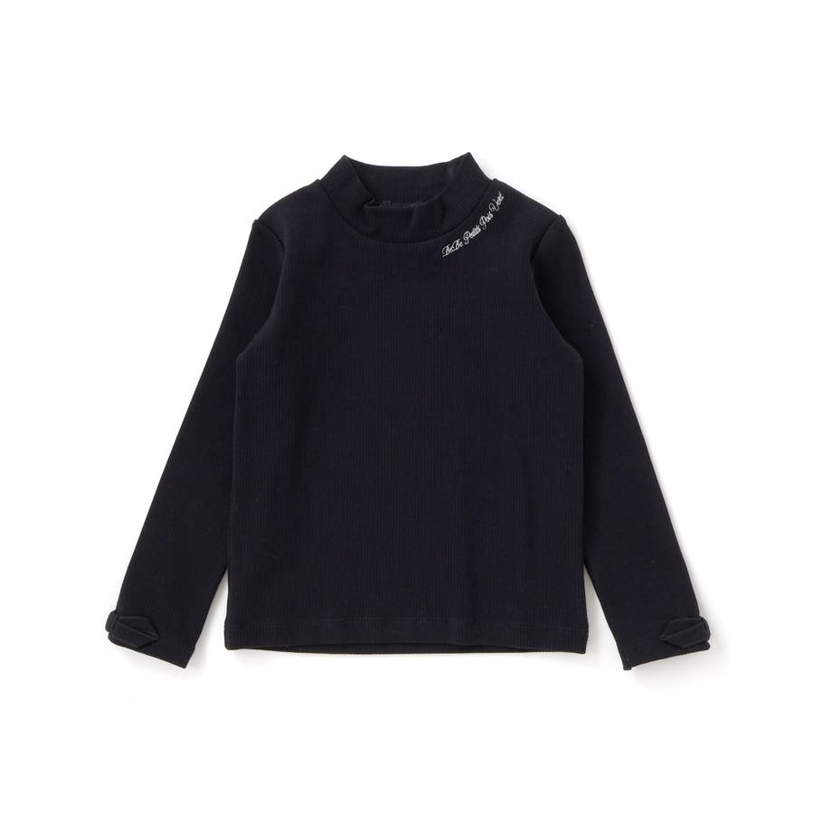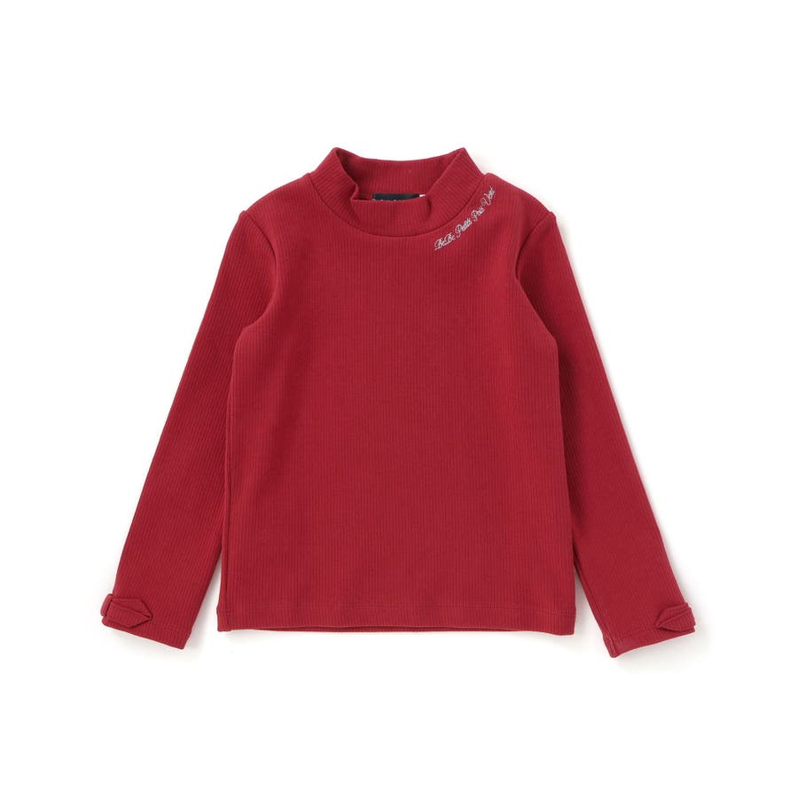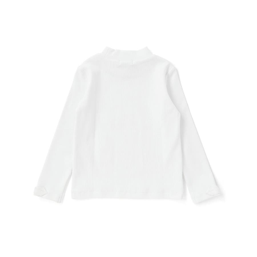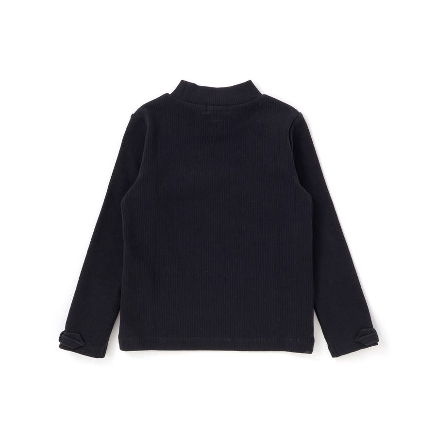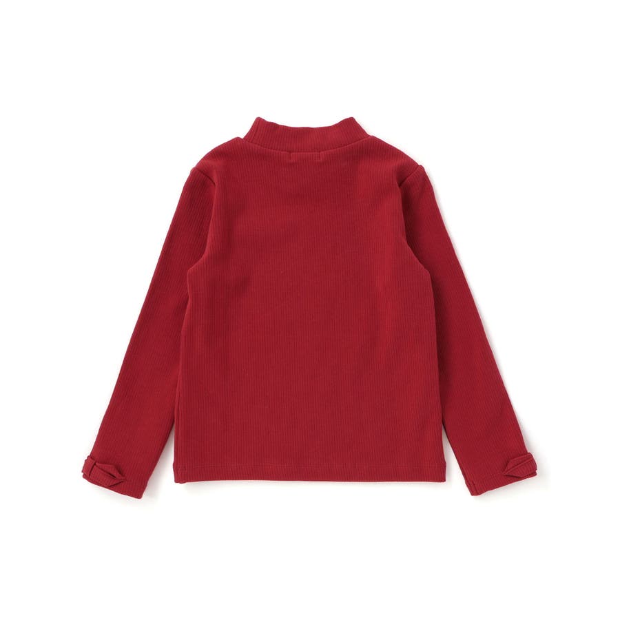 両袖口のリボンモチーフがポイントの着回しの利く女の子用長袖リブトップス。