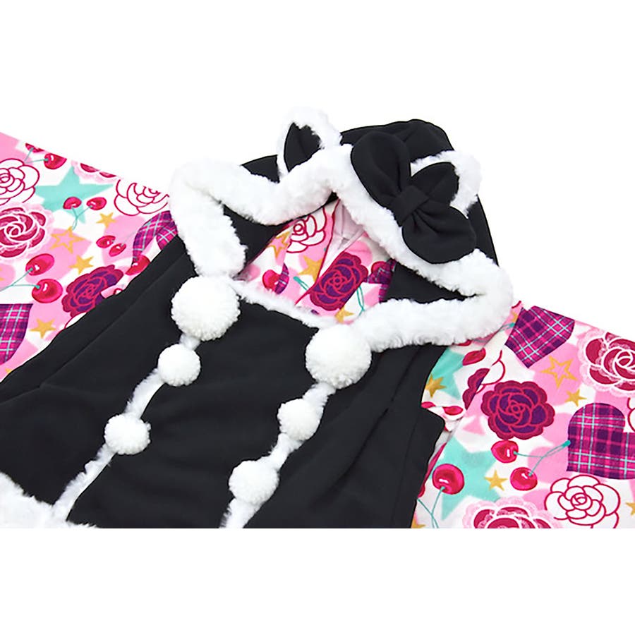 被布コートは、ファーで縁取られ、フードには可愛らしく耳つきです。