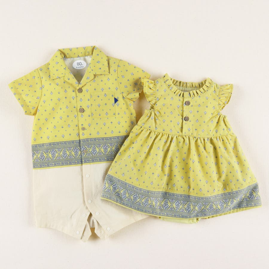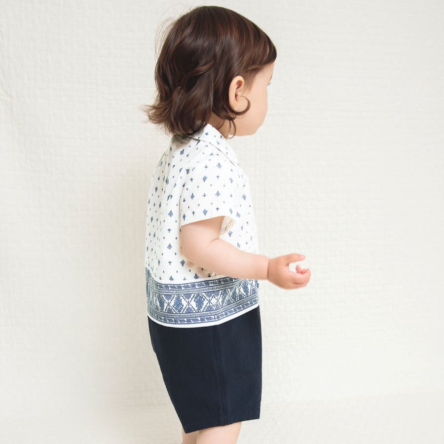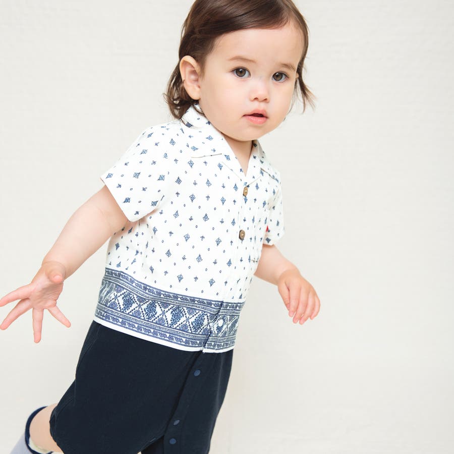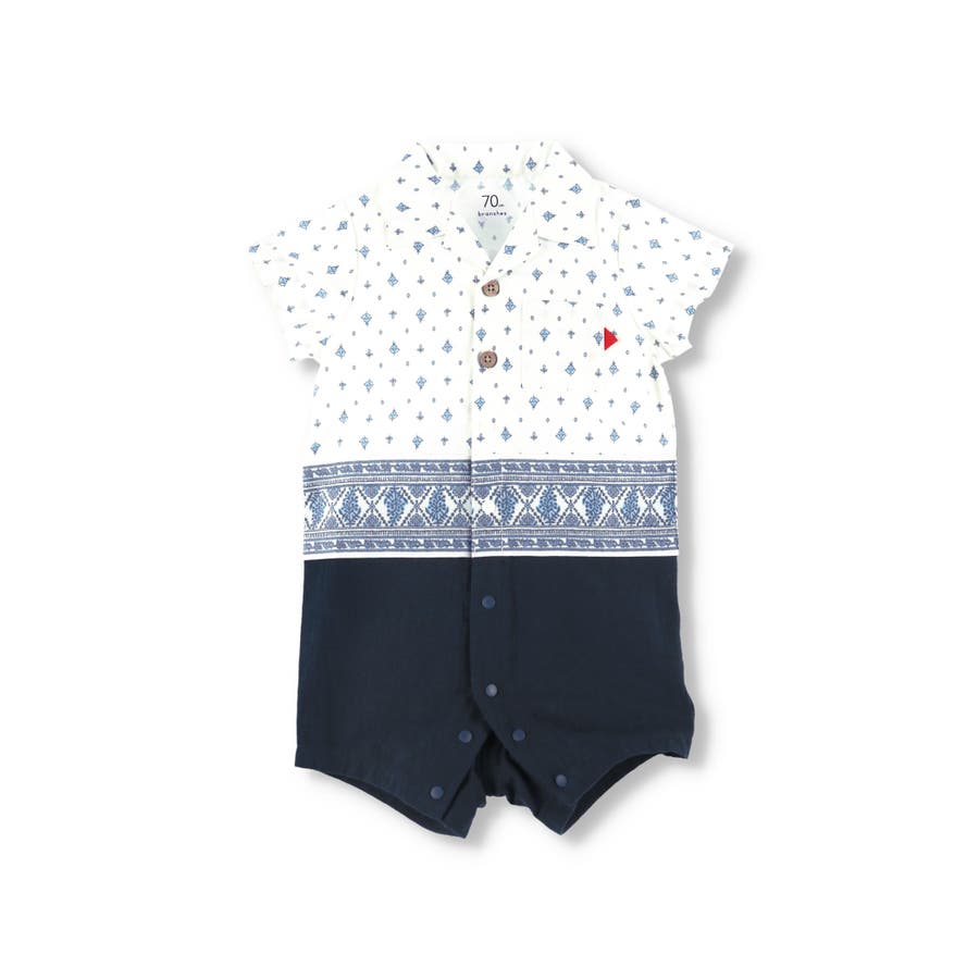 プロヴァンスプリントシャツレイヤード半袖カバーオール 子供服 キッズ