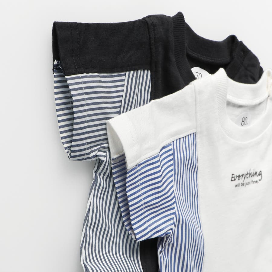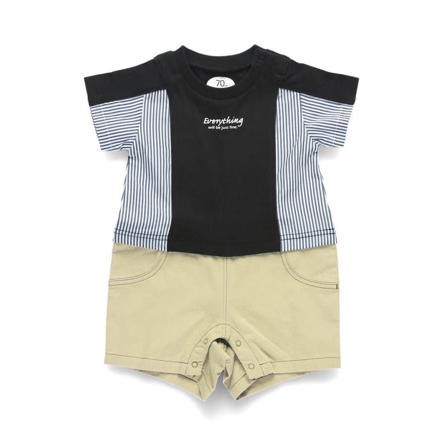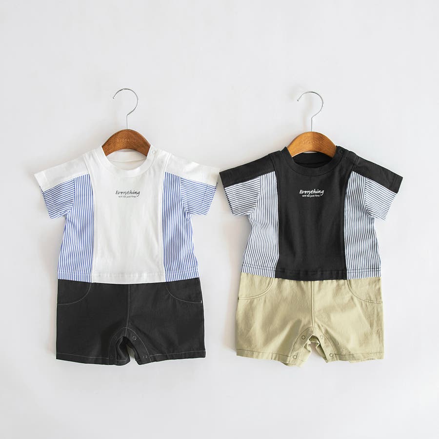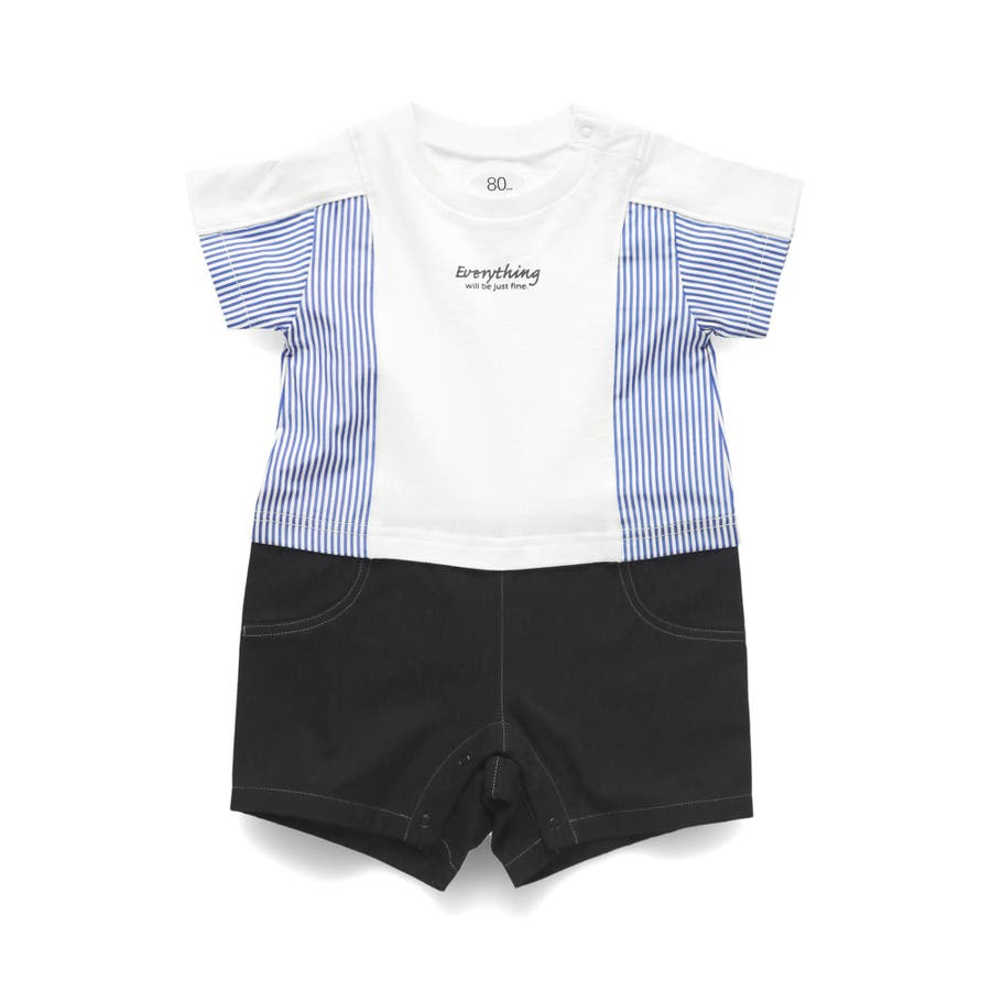 【キッズとリンクコーデ】異素材切り替え半袖カバーオール