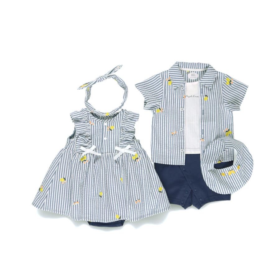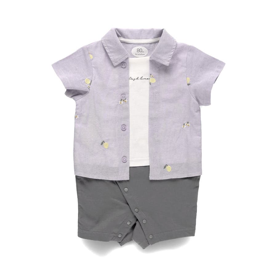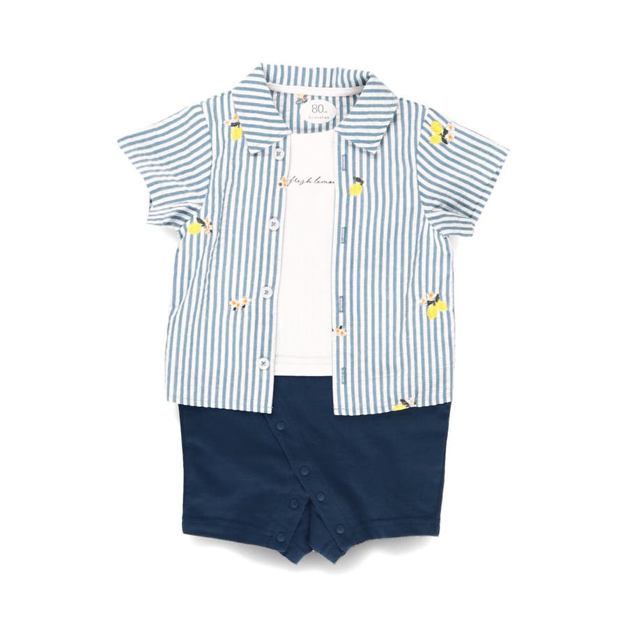 ベビー男児:01-5239-313 【おそろい】レモン&フラワー総柄刺しゅう半袖カバーオール